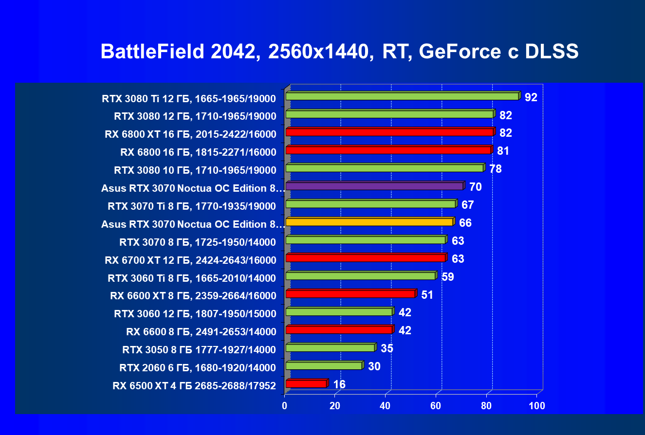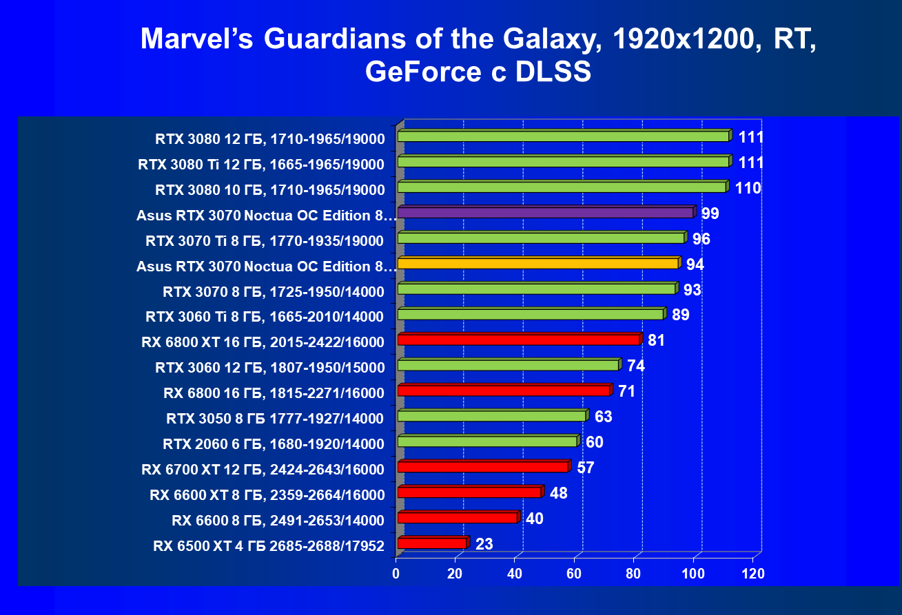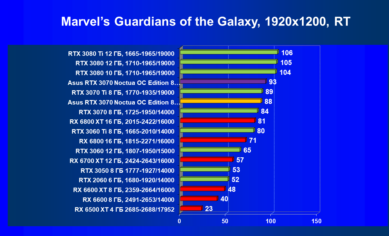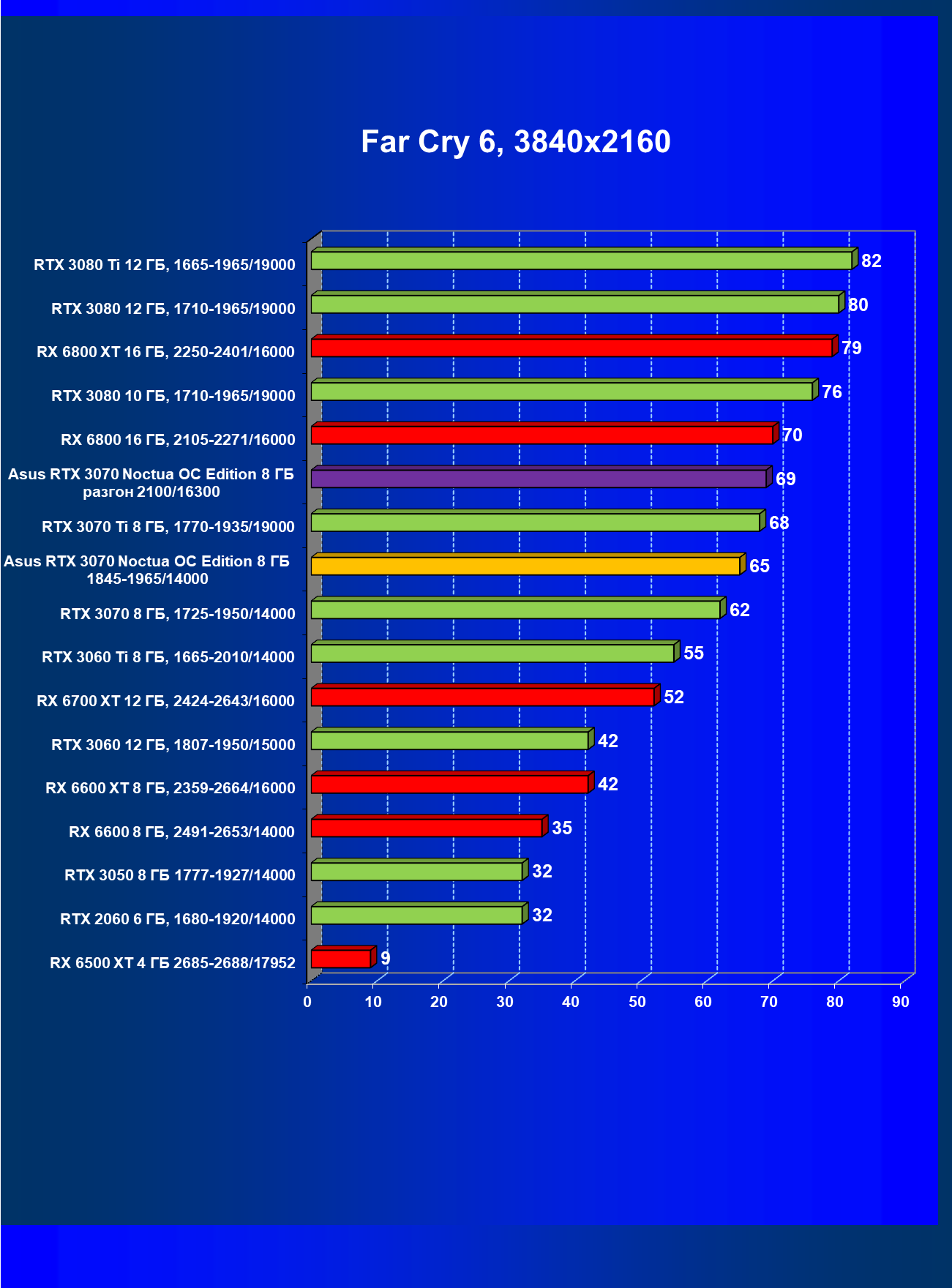 | 07 | Asus RTX 3070 Noctua 8 ГБ, разгон до 2100/16300 | 620 |
