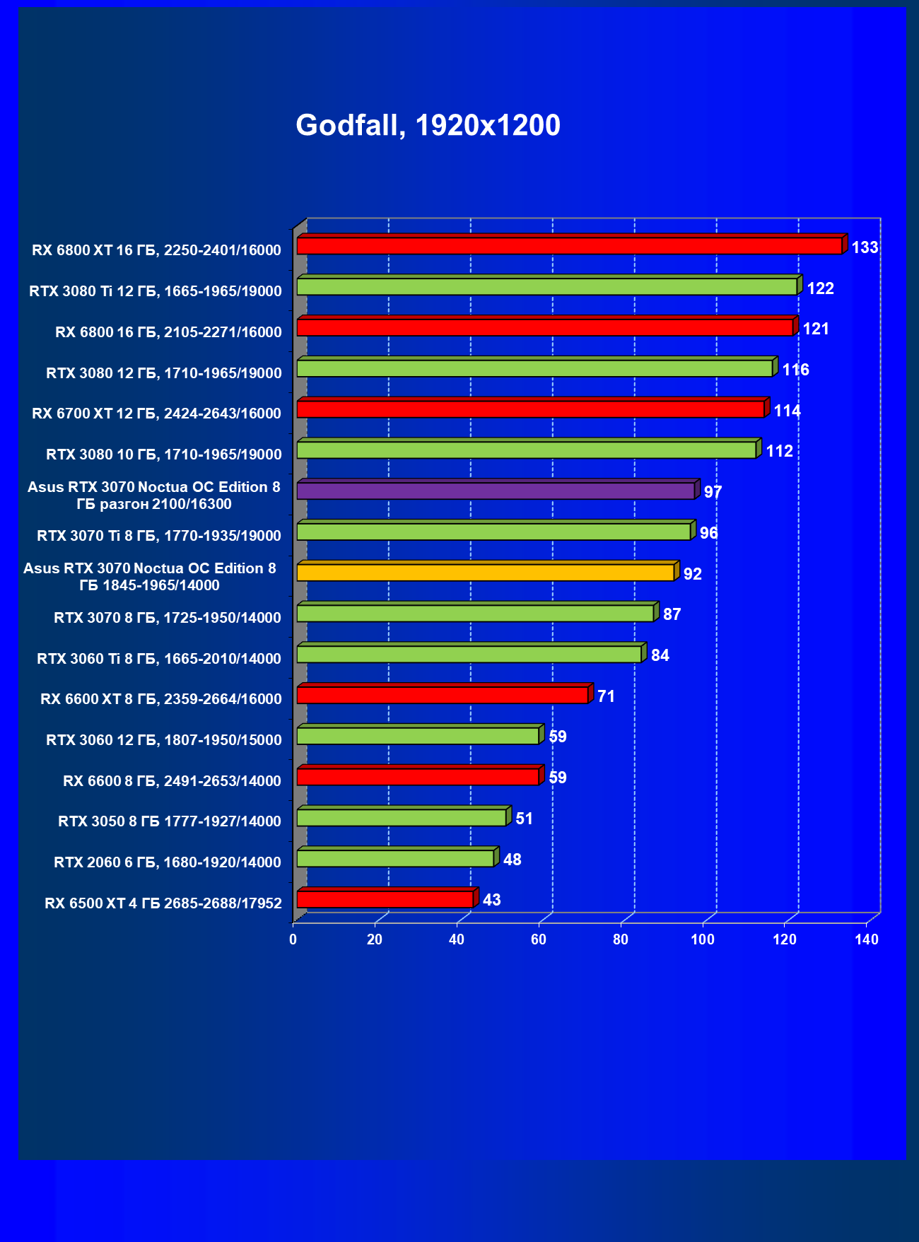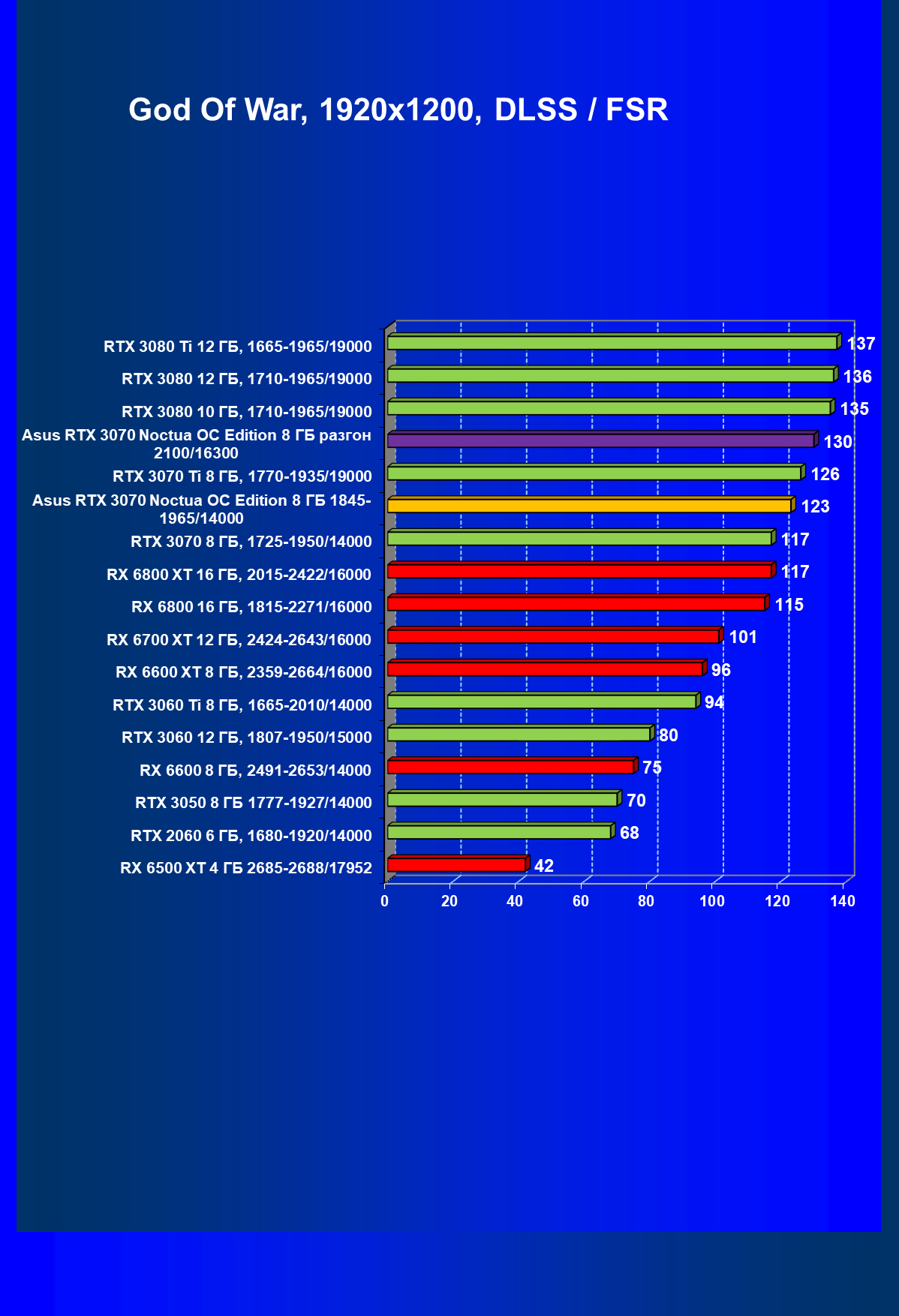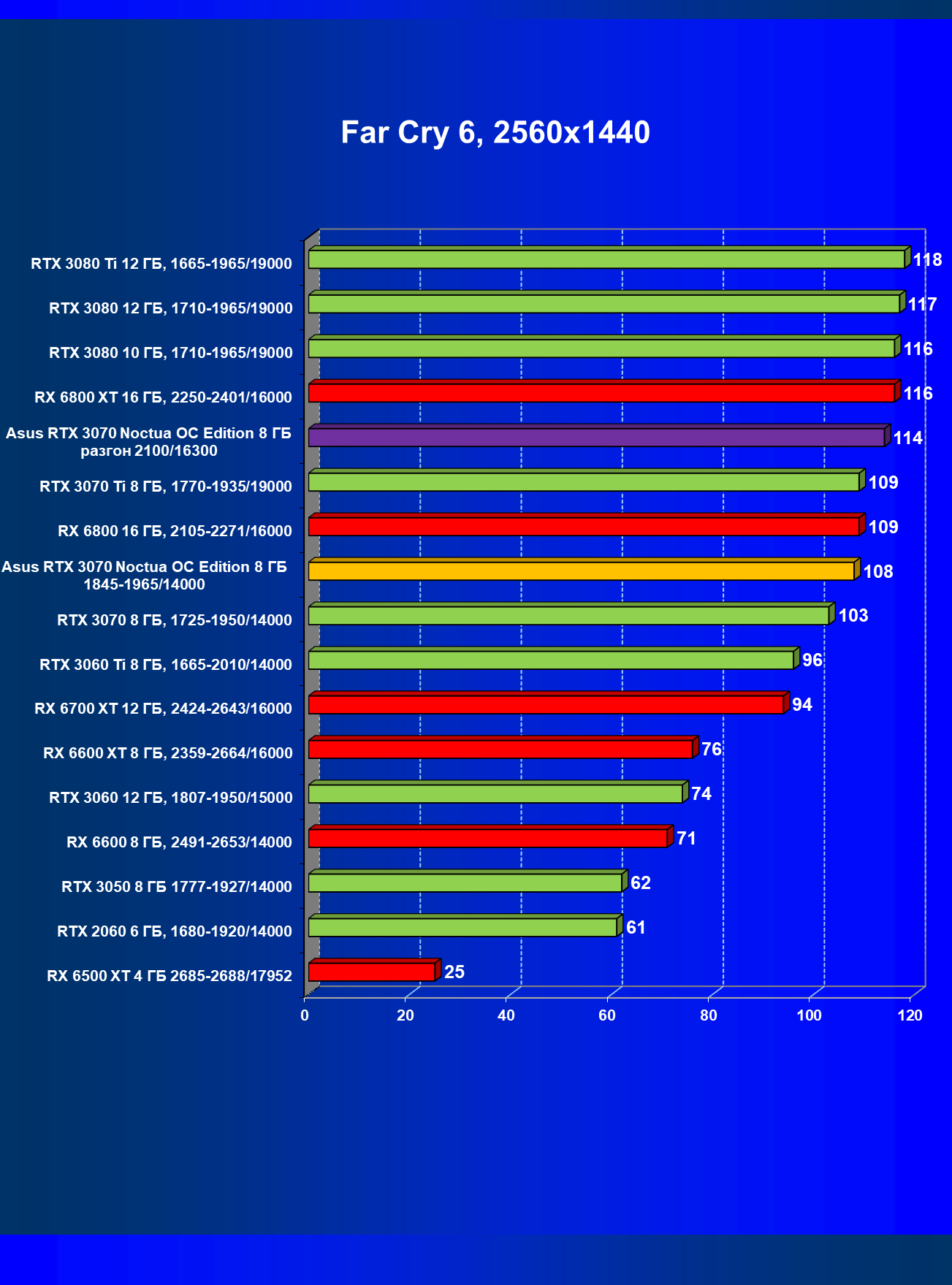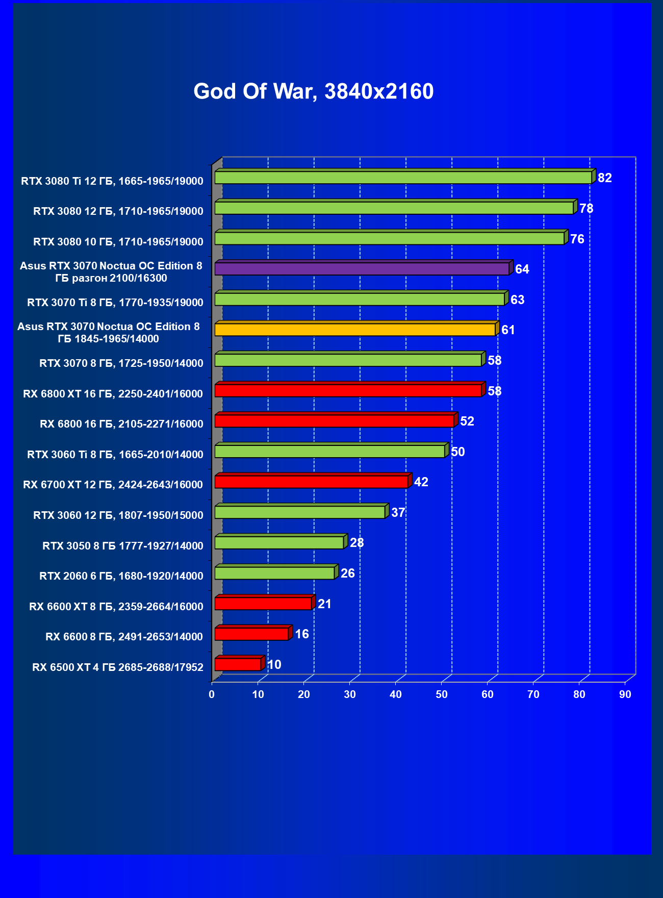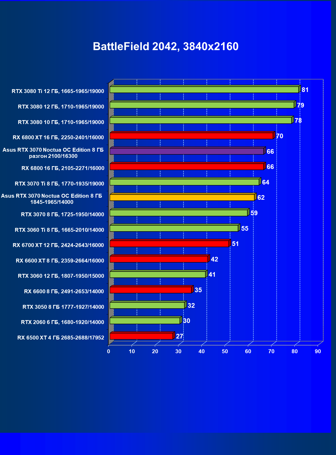 | 07 | Asus RTX 3070 Noctua 8 ГБ, разгон до 2100/16300 | 620 |