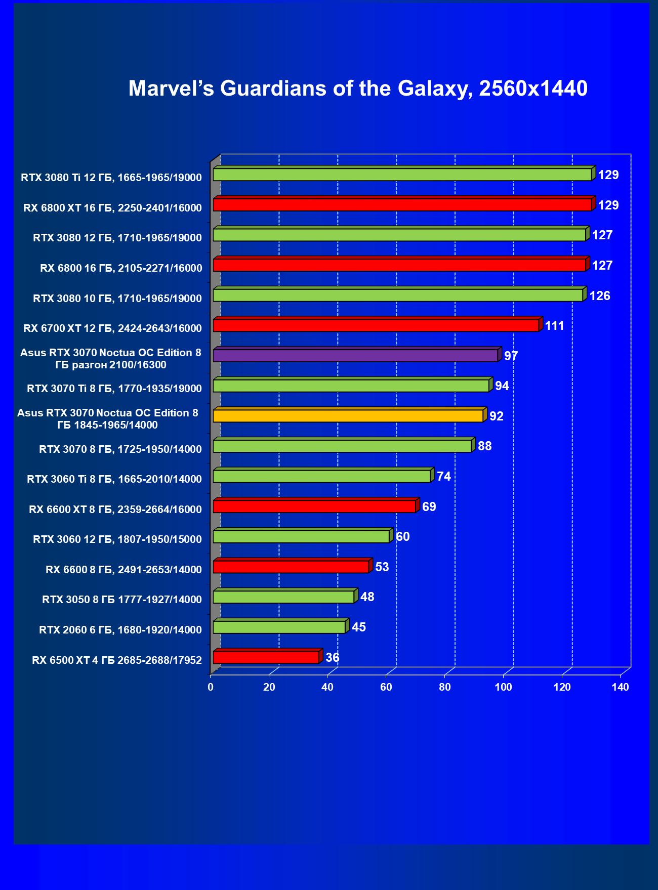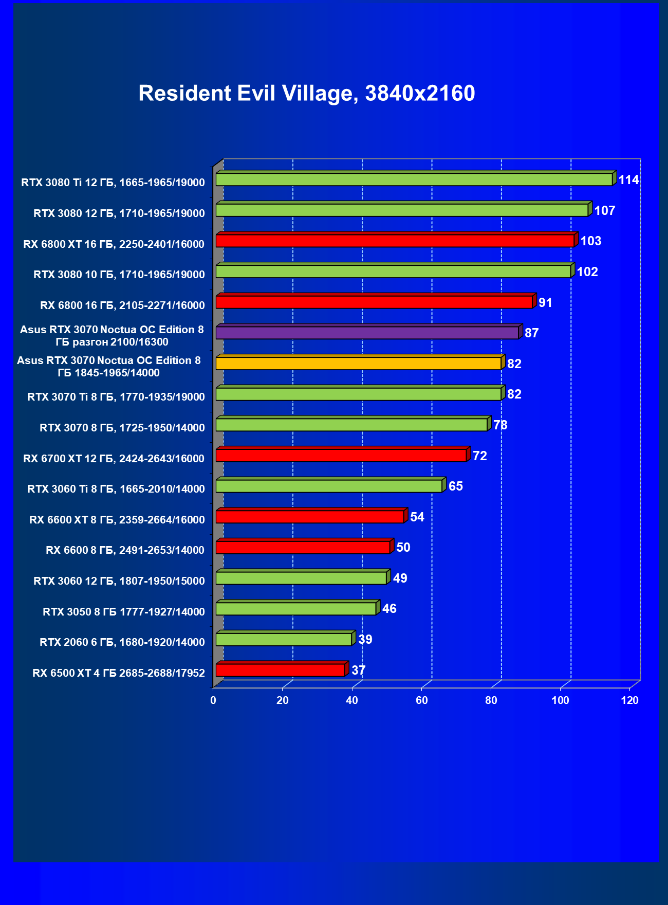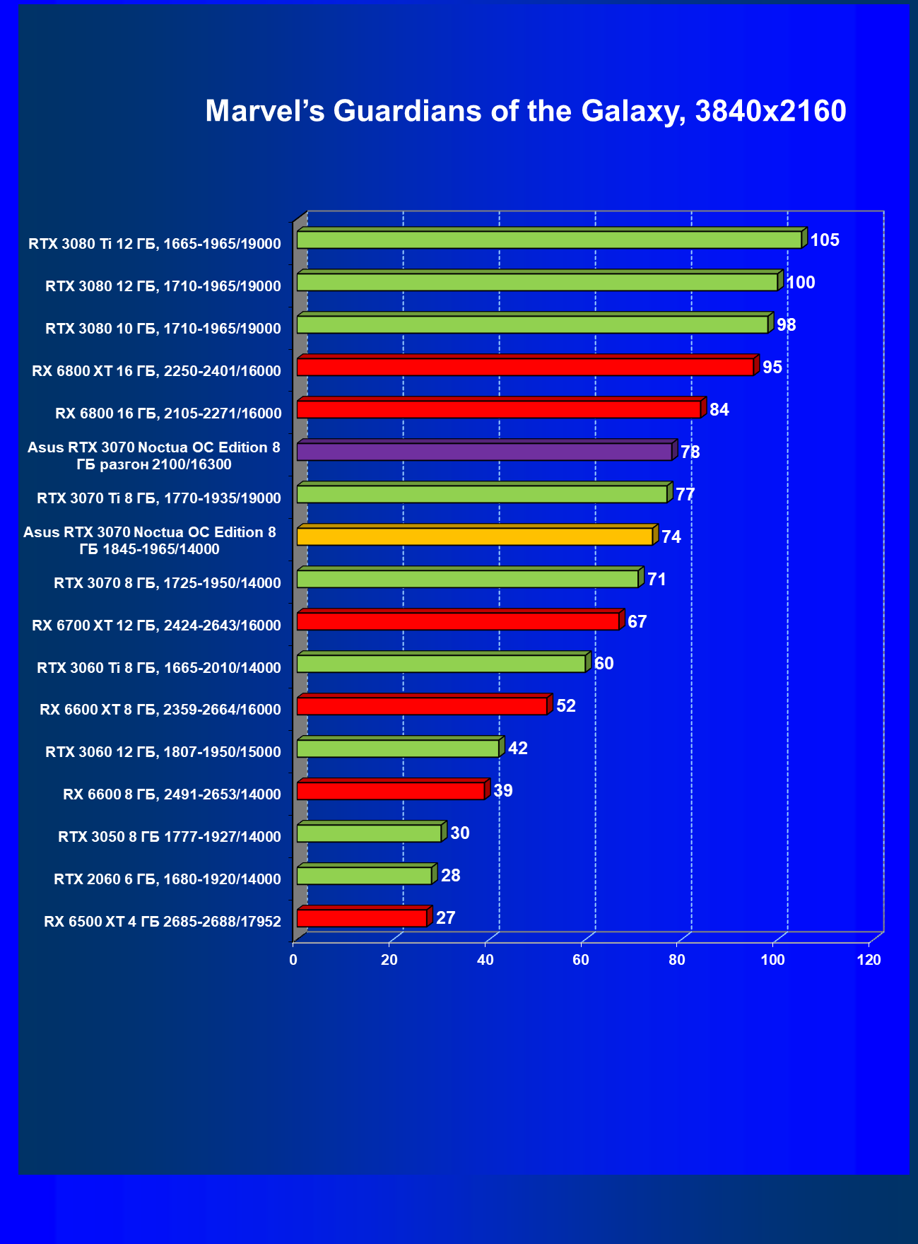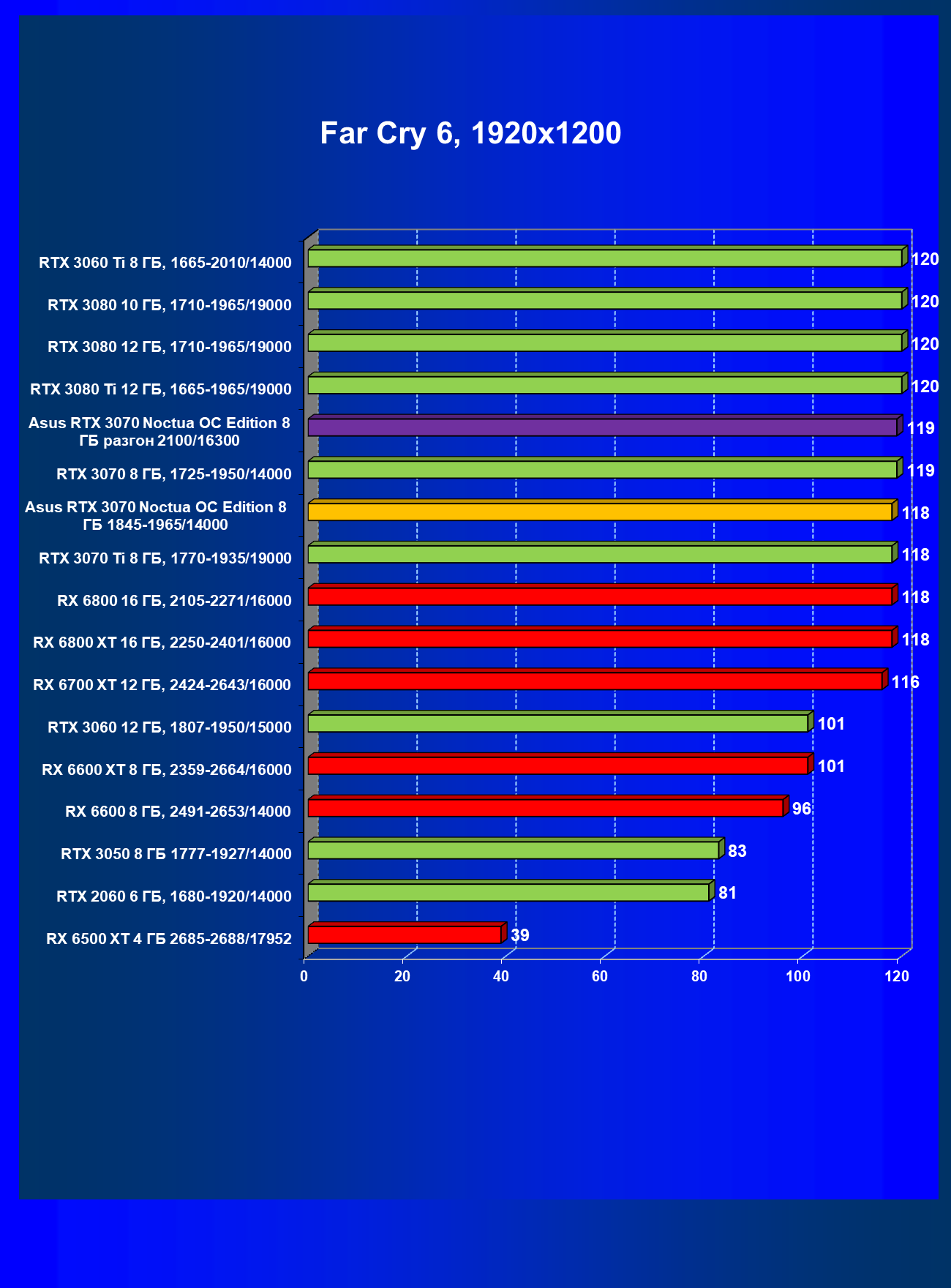 | 07 | Asus RTX 3070 Noctua 8 ГБ, разгон до 2100/16300 | 620 |