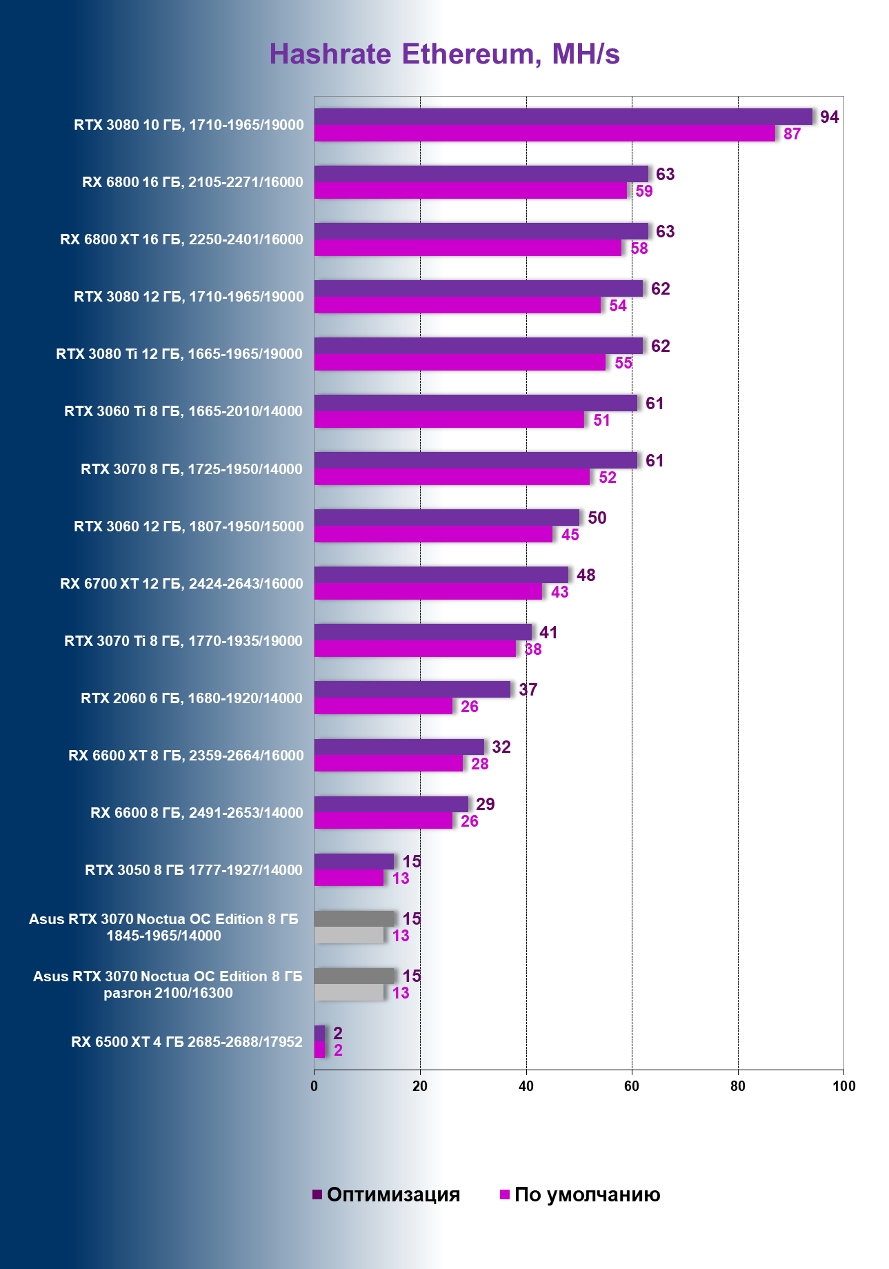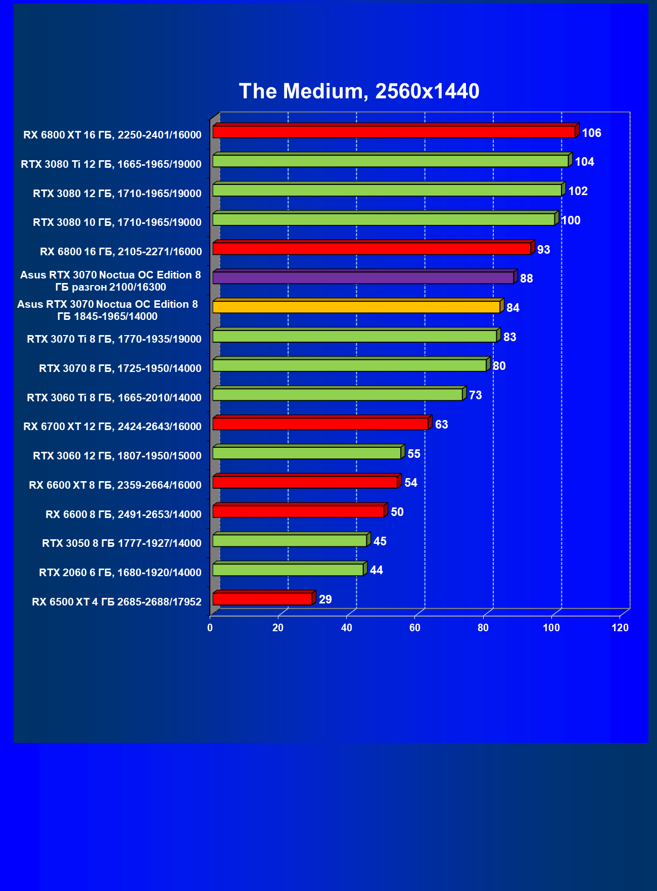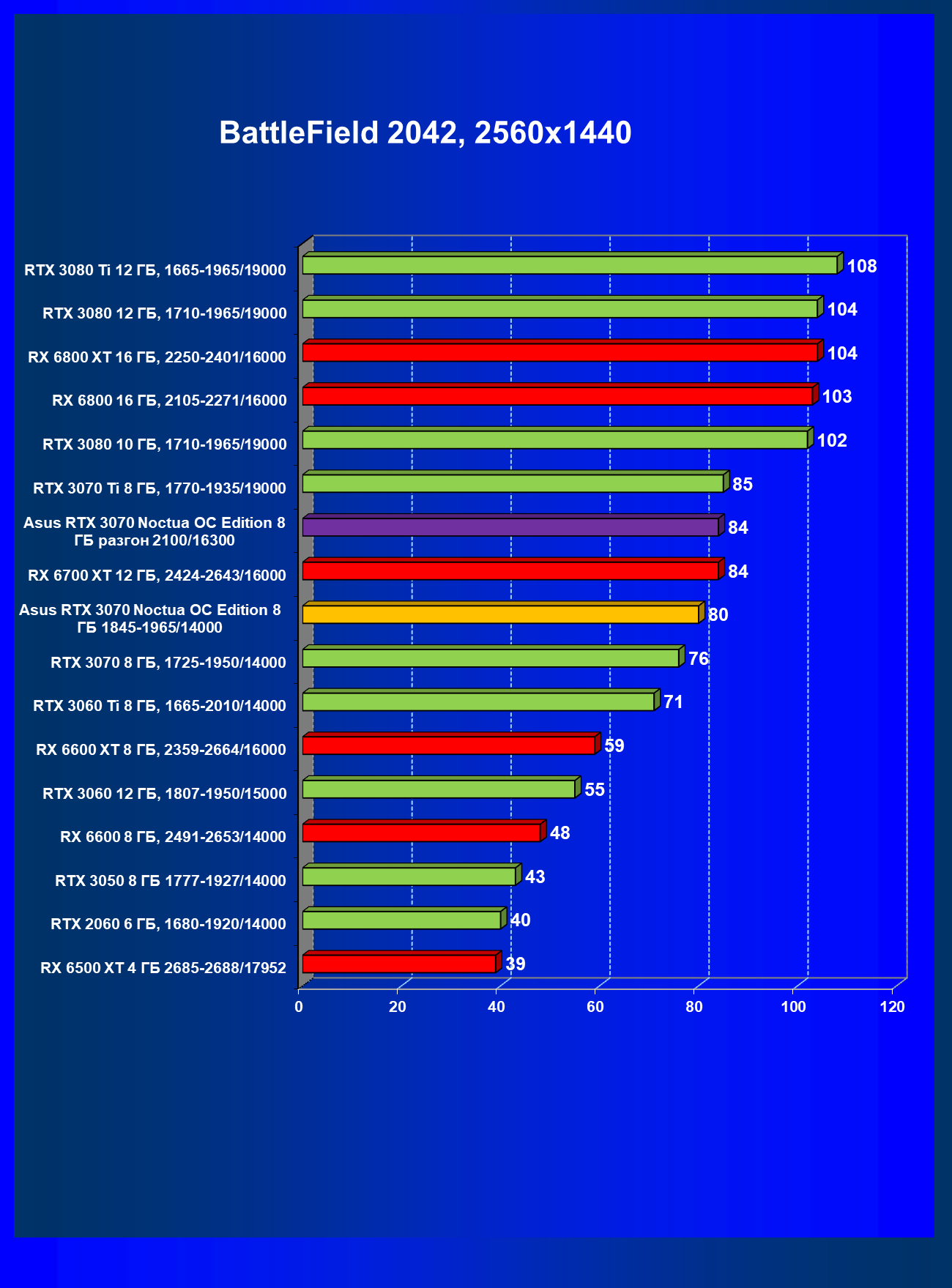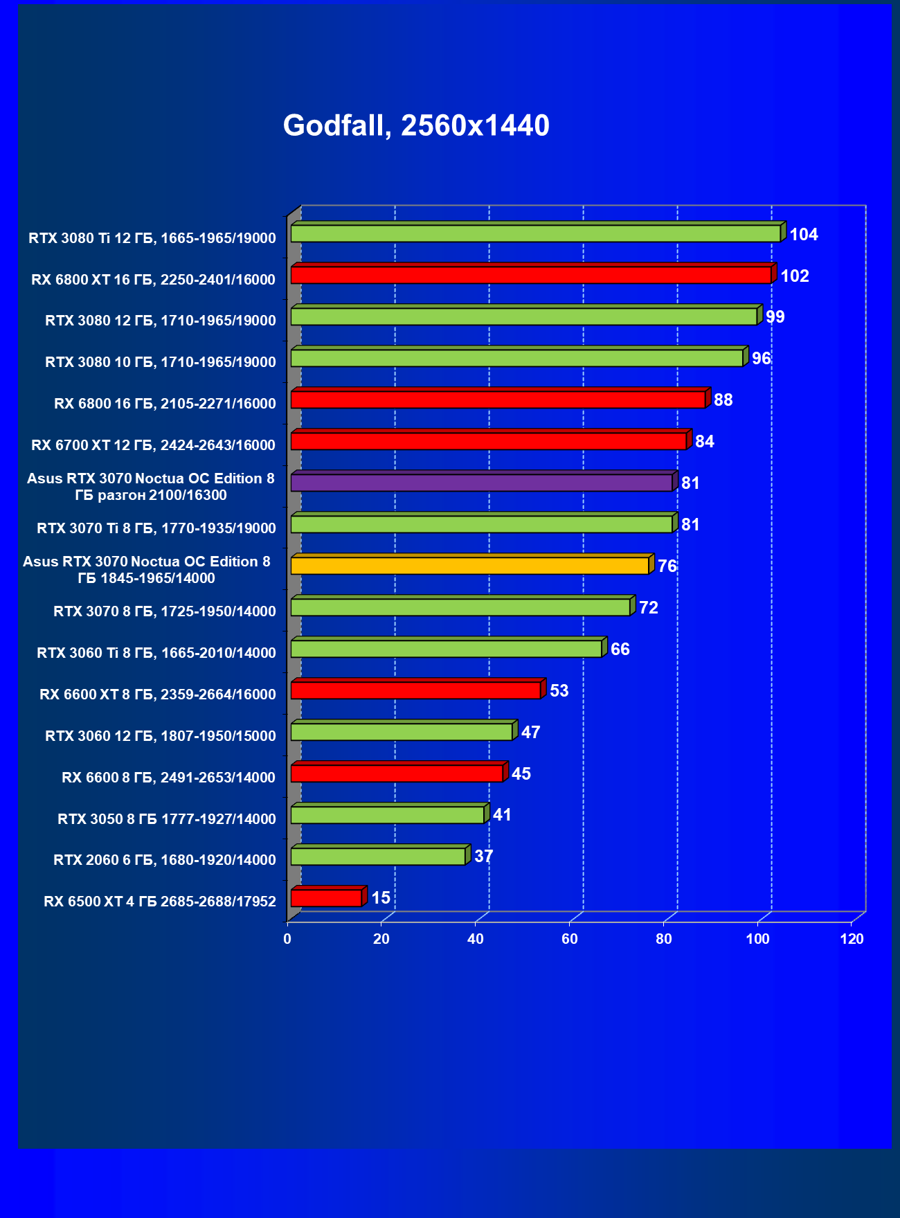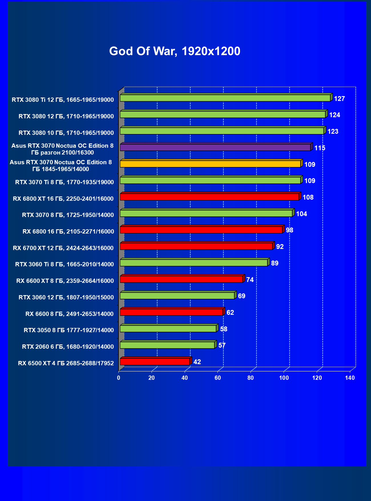 | 07 | Asus RTX 3070 Noctua 8 ГБ, разгон до 2100/16300 | 620 |