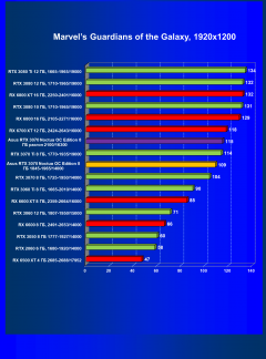 И уж коль скоро мы начали сравнивать с видеокартой Asus TUF Gaming GeForce RTX 3070 OC Edition, то приведем и ее цифры в тех же режимах: