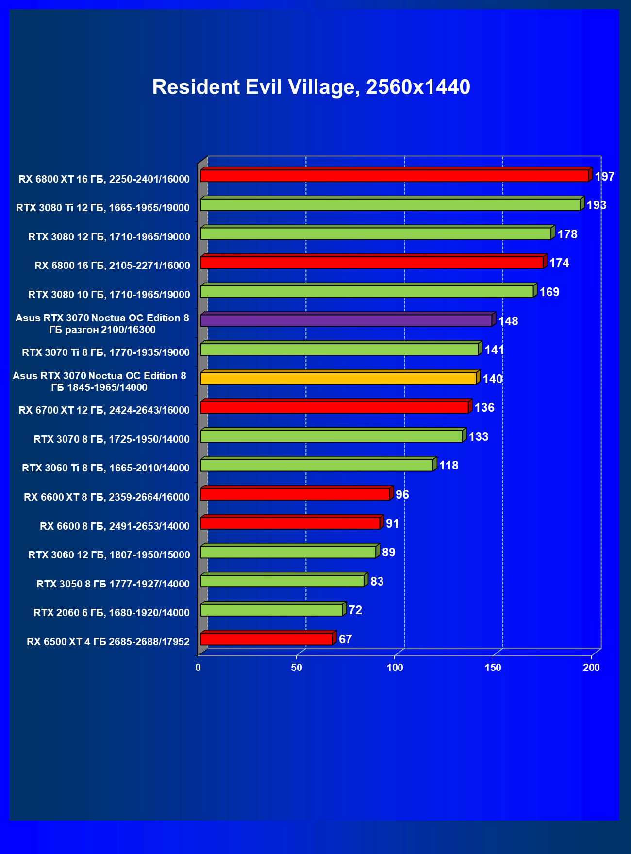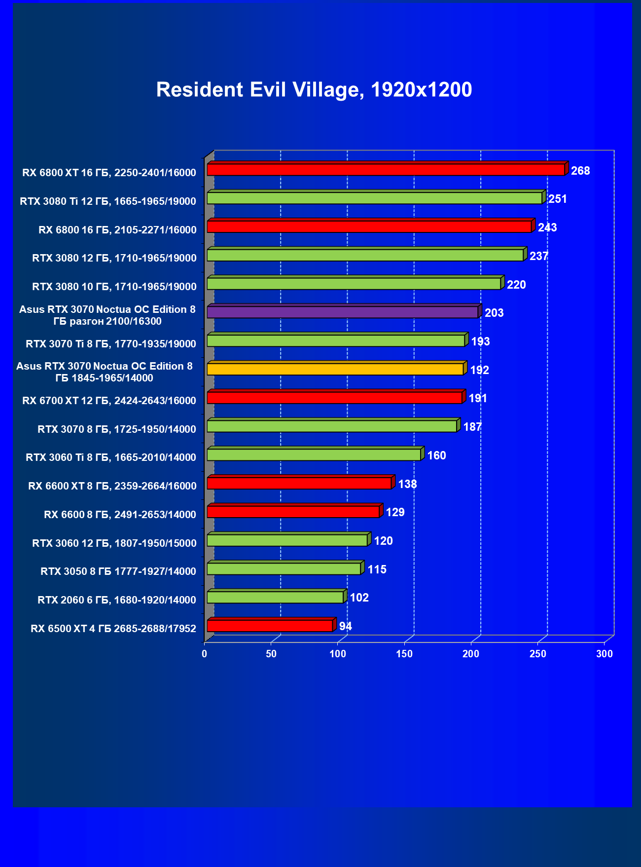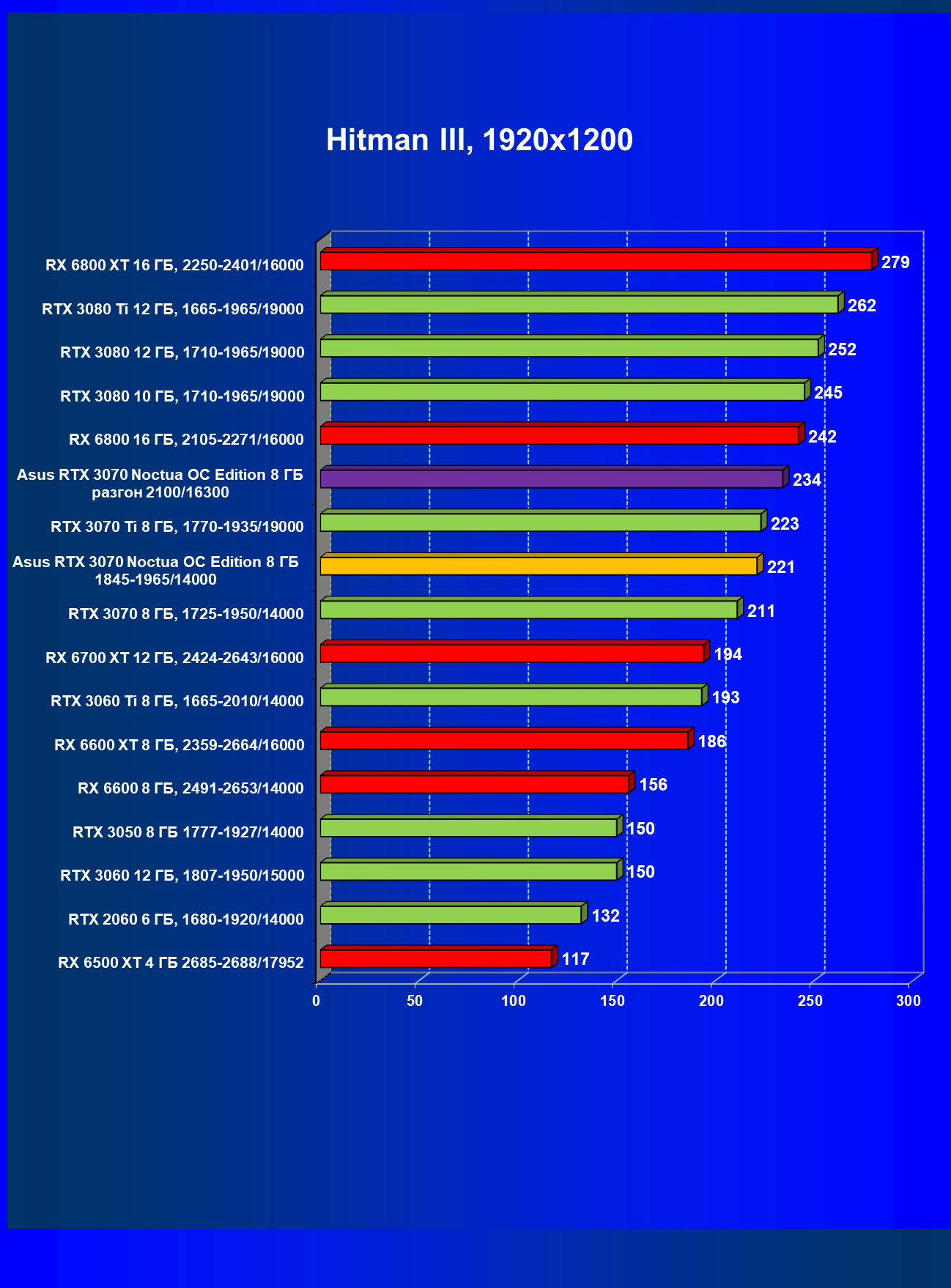 | 10 | Asus RTX 3070 Noctua 8 ГБ, 1845—1965/14000 | 300 |
