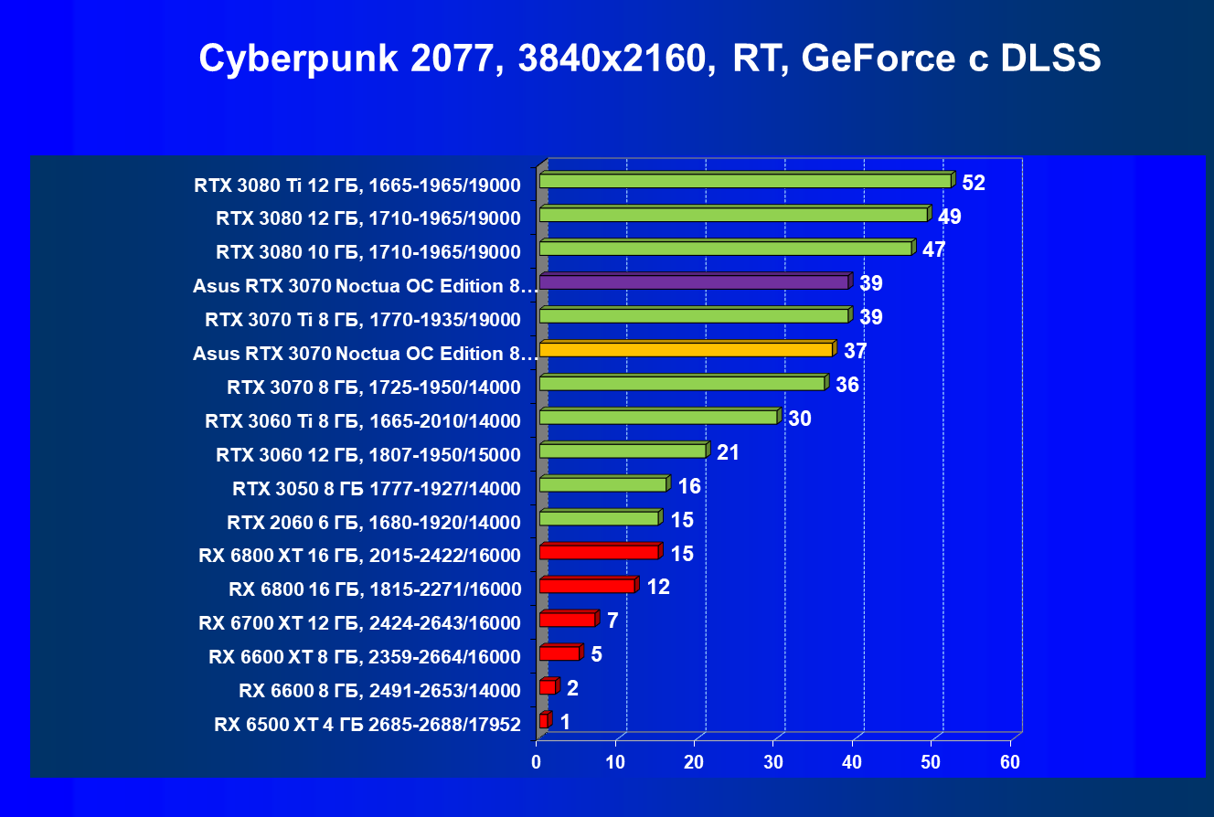 | 08 | Asus RTX 3070 Noctua 8 ГБ, разгон до 2100/16300 | 310 |