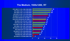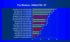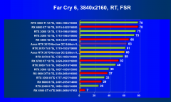Рейтинг составлен по 9 тестам с применением технологии трассировки лучей (с Nvidia DLSS и с AMD FSR в играх God of War, The Medium и Far Cry 6). Этот рейтинг нормирован по самому слабому ускорителю в данной группе — Radeon RX 6500 XT (то есть сочетание скорости и функций Radeon RX 6500 XT приняты за 100%).
