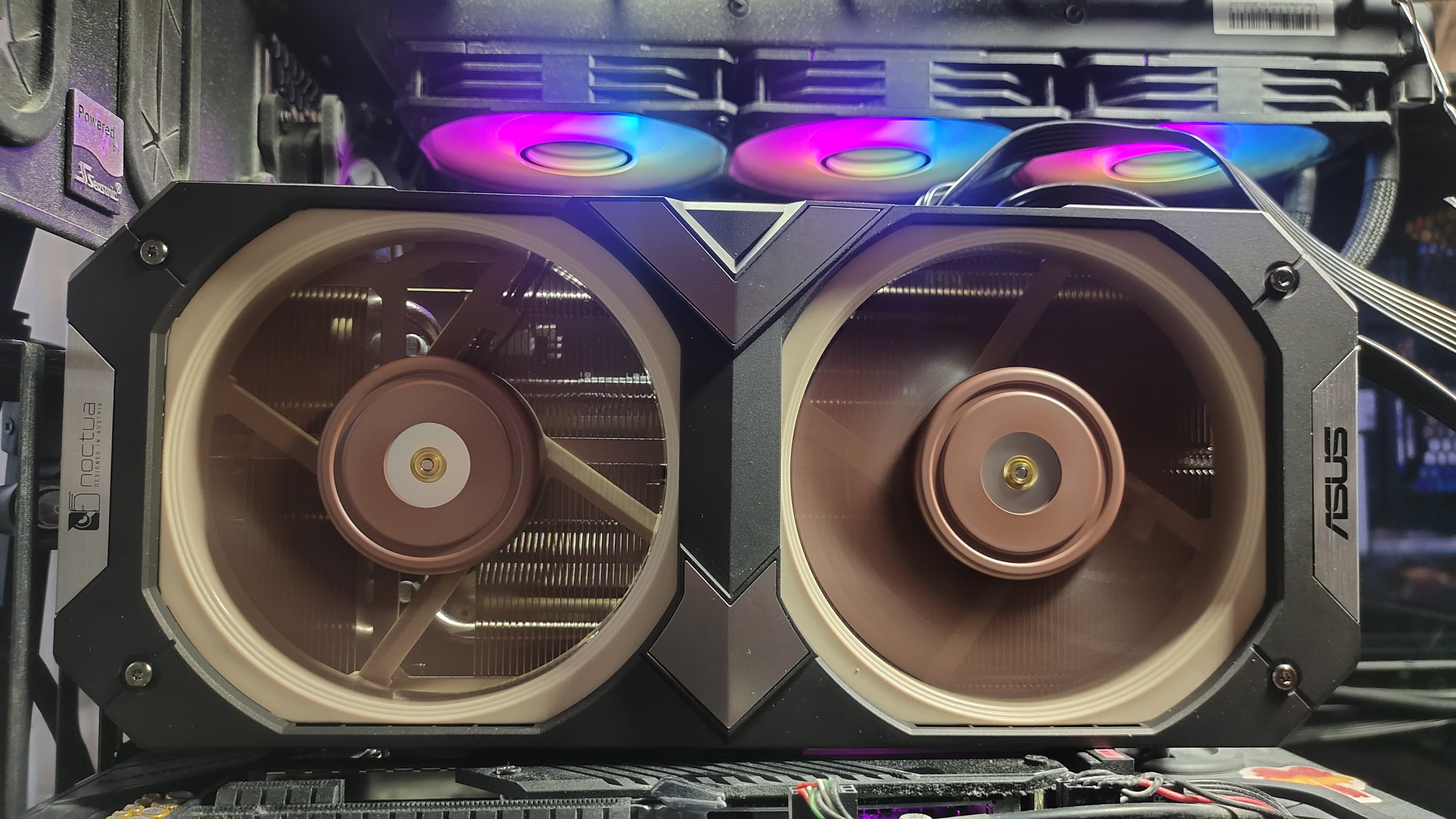 На всех обозреваемых поверхностях кожуха нанесены логотипы Asus и Noctua.