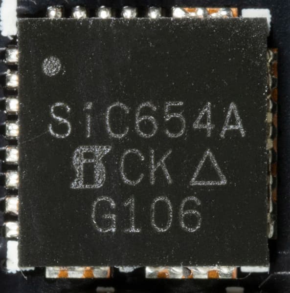 В преобразователе питания используются транзисторные сборки DrMOS — SiC654A (Vishay), каждая из которых рассчитана максимум на 50 А.