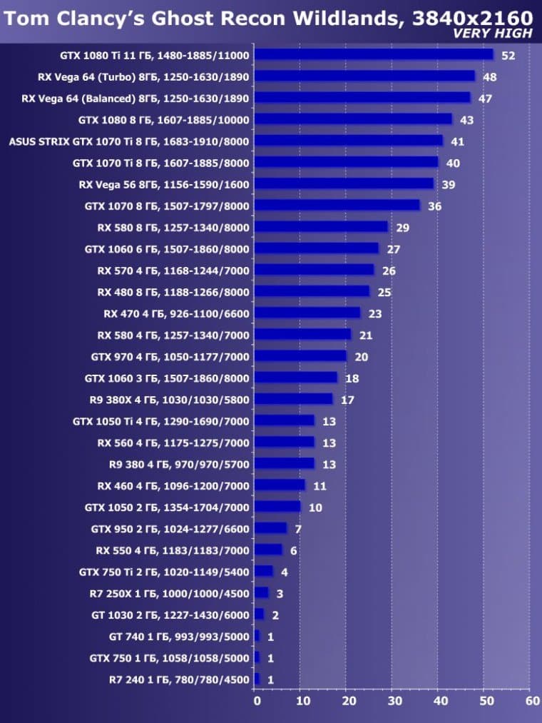 | 05 | Asus Strix GTX 1070 Ti 8 ГБ, 1683—1910/8000 | 2290 | 595 | 38 500 |