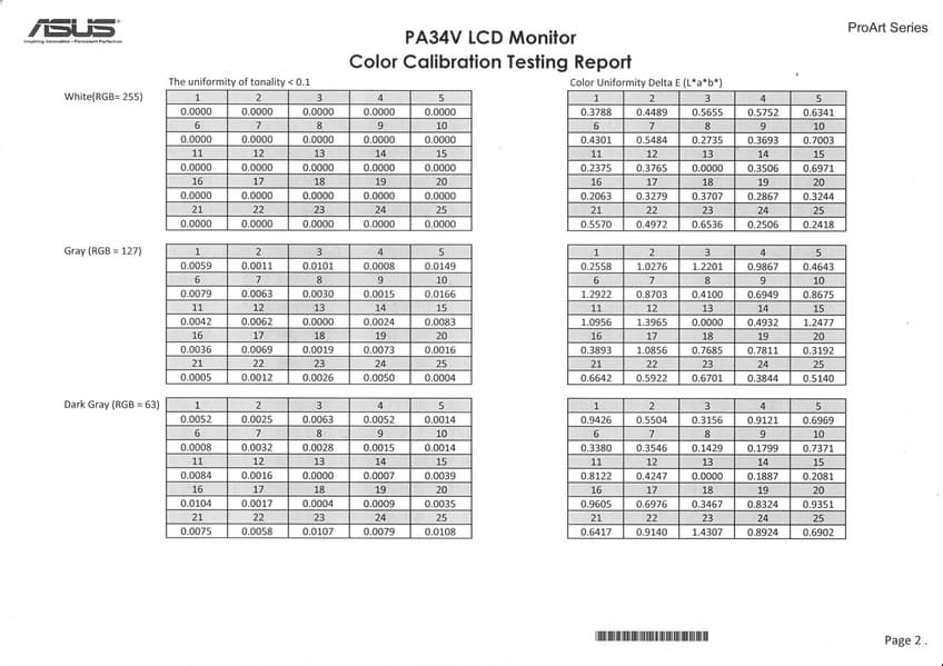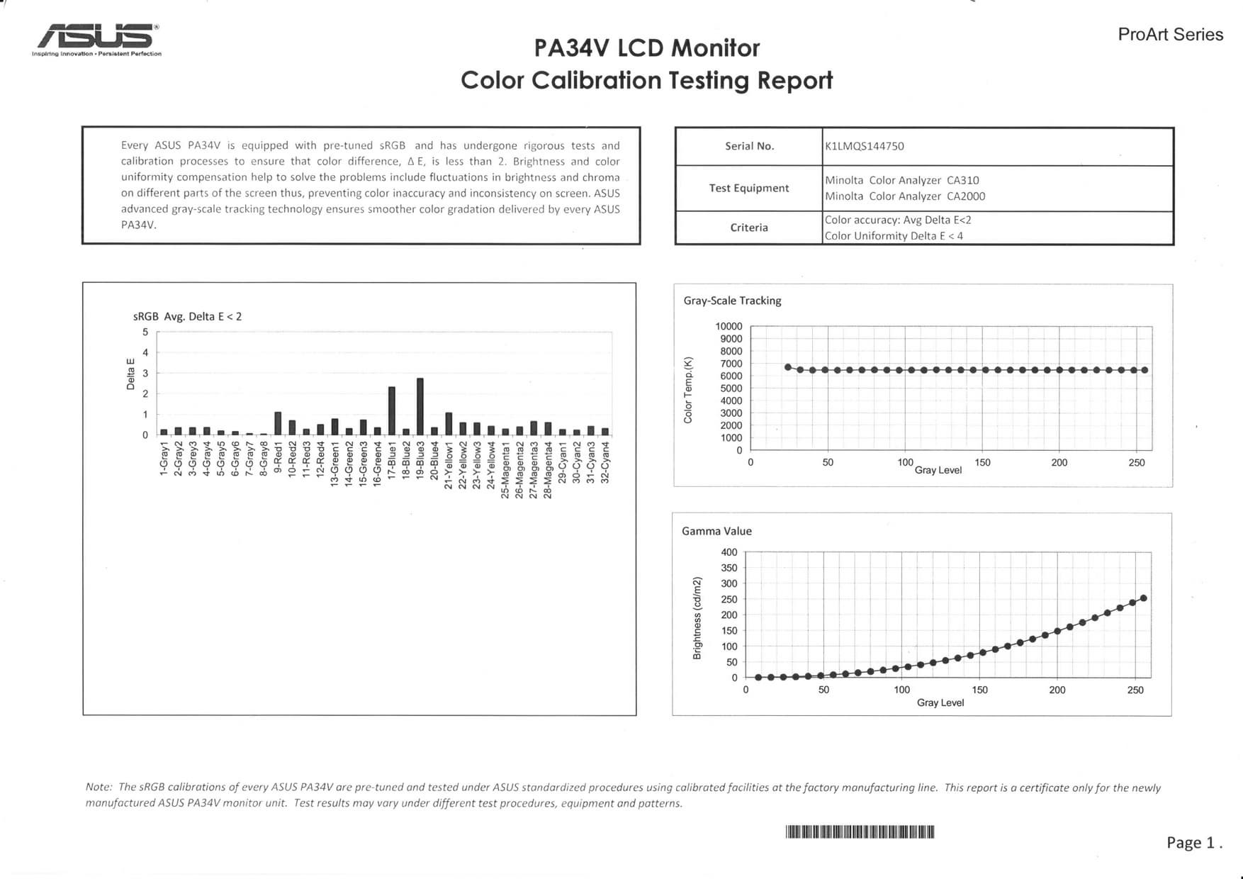 К монитору, к каждому конкретному экземпляру прилагается свой отчет о качестве цветового баланса, включая равномерность по площади:
