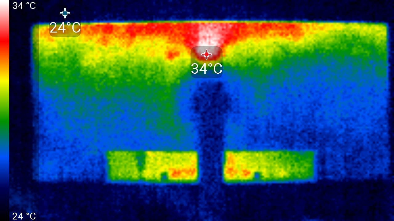 Нагрев монитора можно оценить по снимкам с ИК-камеры, полученным после долговременной работы монитора на максимальной яркости в помещении с температурой примерно 24 °C.