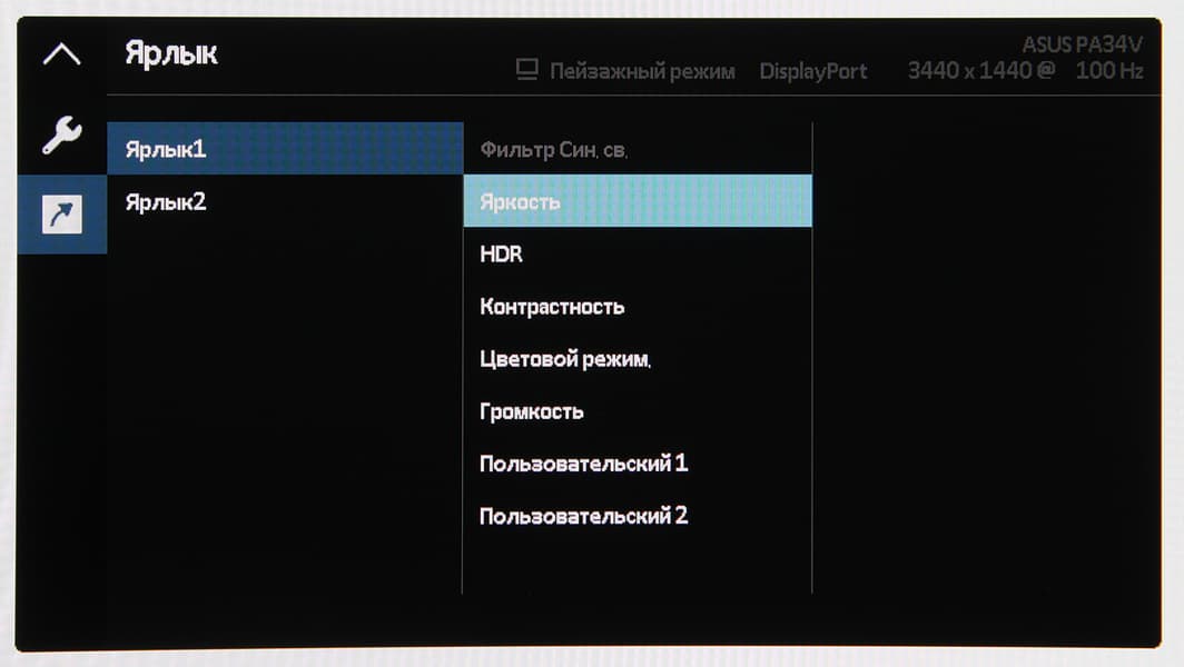 По умолчанию это регулировка яркости и снижение интенсивности синей компоненты. Также в коротком меню есть выбор входа и вход в меню с настройками изображения от двух источников. Пункт выхода из короткого меню по ошибке переведен как «близко» (к этому в мониторах Asus уже привыкаешь), а первая строчка (нажатие на джойстик) — это вход в основное меню. Основное меню относительно большое. При настройке изображения меню остается на экране, что немного мешает оценке вносимых корректировок. Настраивается прозрачность фона и задержка автоматического выхода из меню. Есть возможность заблокировать все кнопки. Присутствует русская версия экранного меню.
