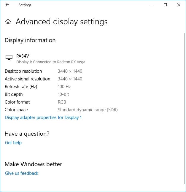 А также HDR (10 бит на цвет в случае подключения по DisplayPort/Thunderbolt; по HDMI — те же 8 бит на цвет, дополненных динамическим смешением цветов, видимо, с помощью видеокарты на аппаратном уровне). После снижения частоты обновления до 60 Гц — по HDMI уже 12 бит на цвет.