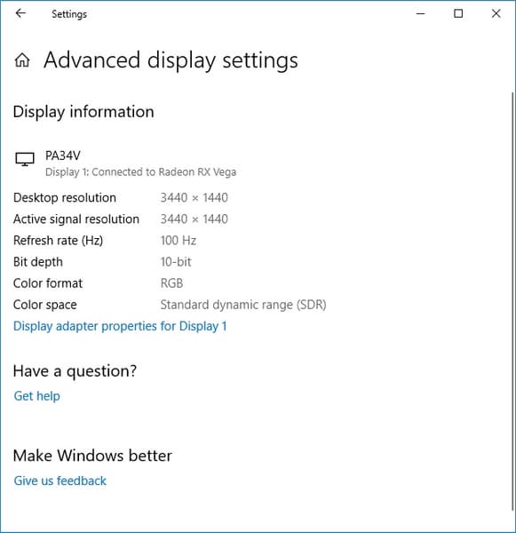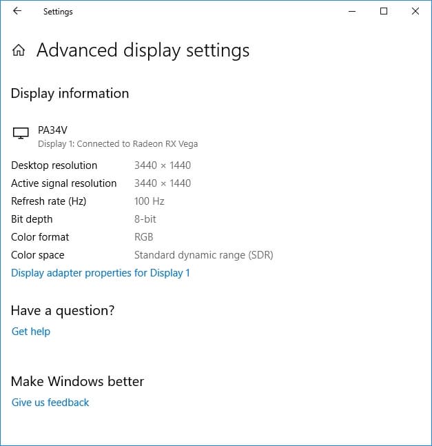 При подключении к компьютеру по DisplayPort, Thunderbolt и HDMI поддерживалось разрешение до 3440×1440 при 100 Гц кадровой частоты на вход, и вывод изображения на экран также осуществлялся с этой частотой. При таком разрешении и частоте обновления поддерживаются 10 бит на цвет (кодирование RGB) в случае подключения по DisplayPort/Thunderbolt и 8 бит на цвет — по HDMI.