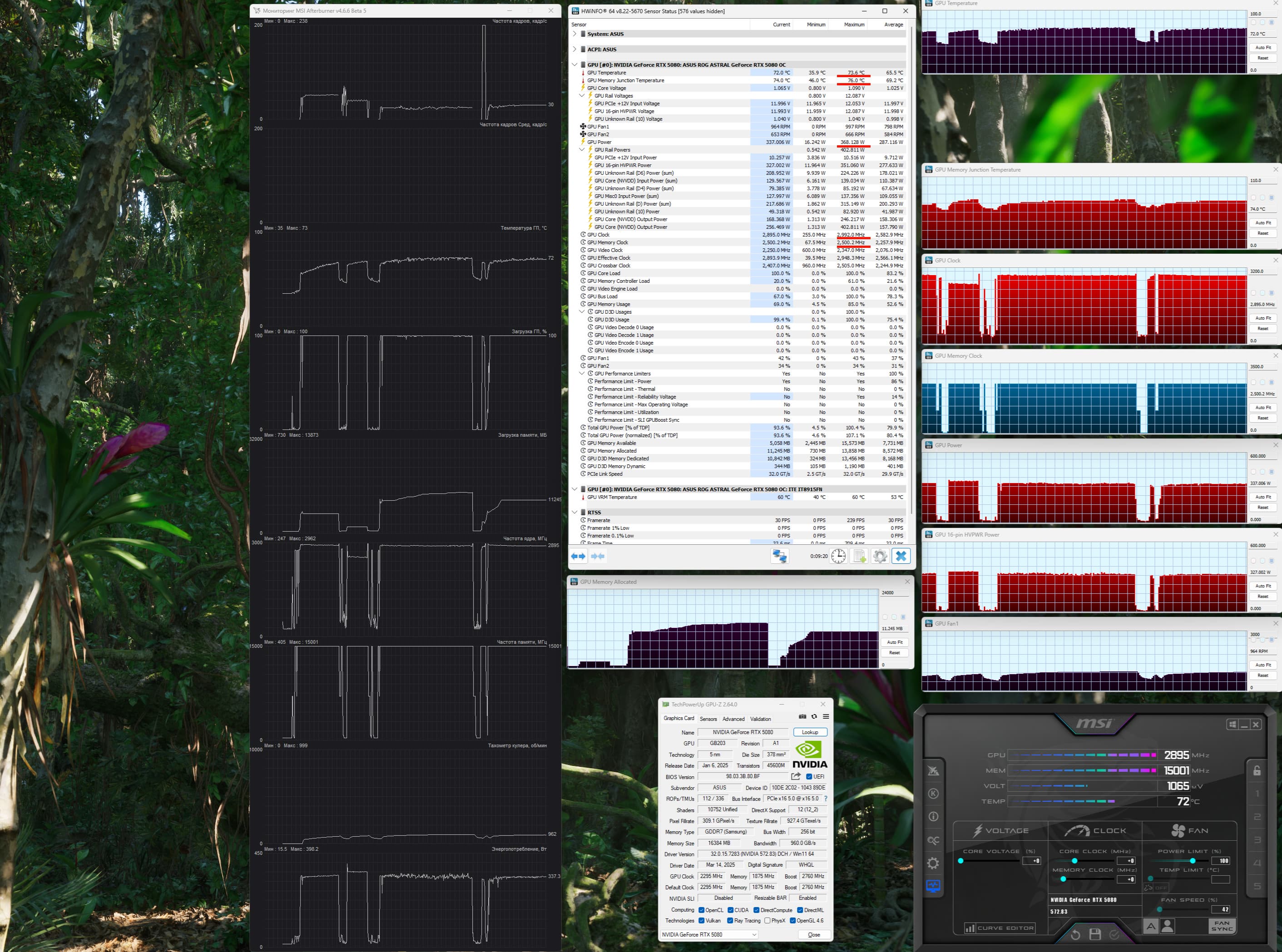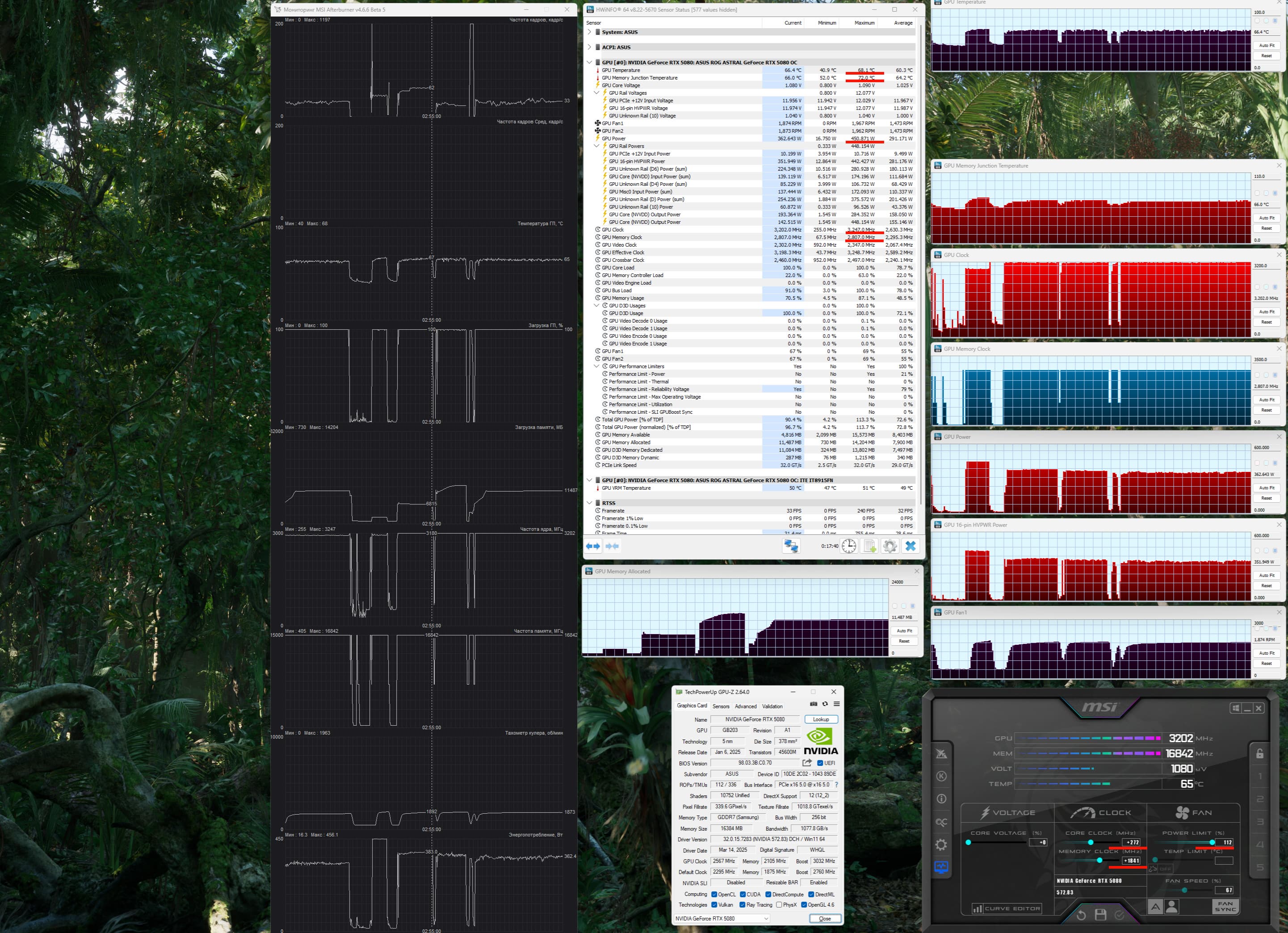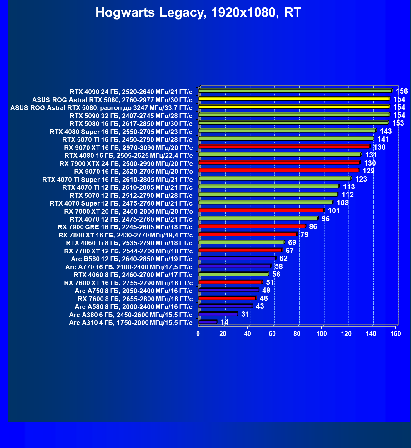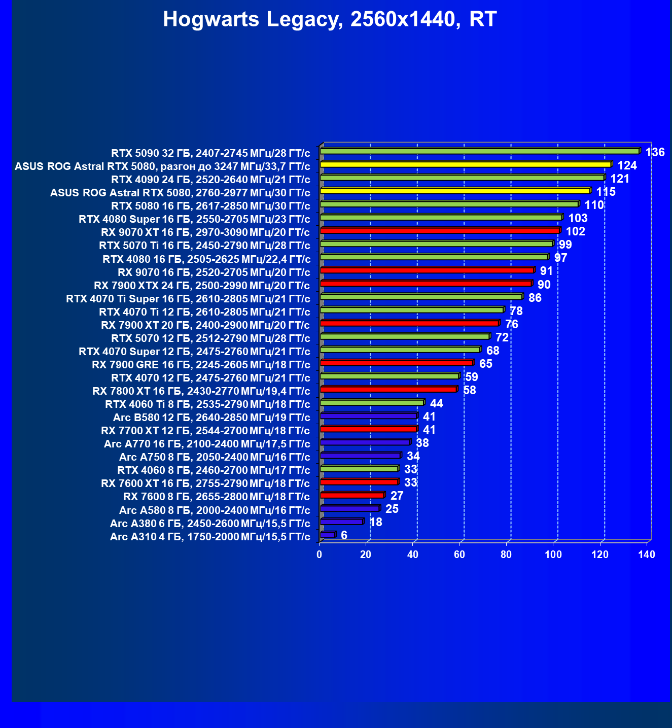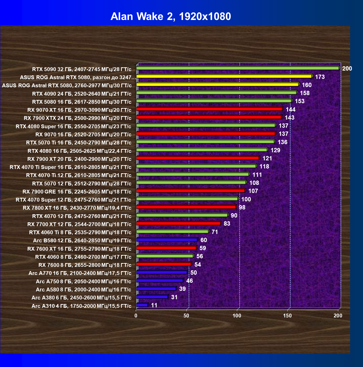 | 06 | Asus ROG Astral RTX 5080, 2760—2977 МГц/30 ГТ/с | 769 | 13838 | 180 000 |