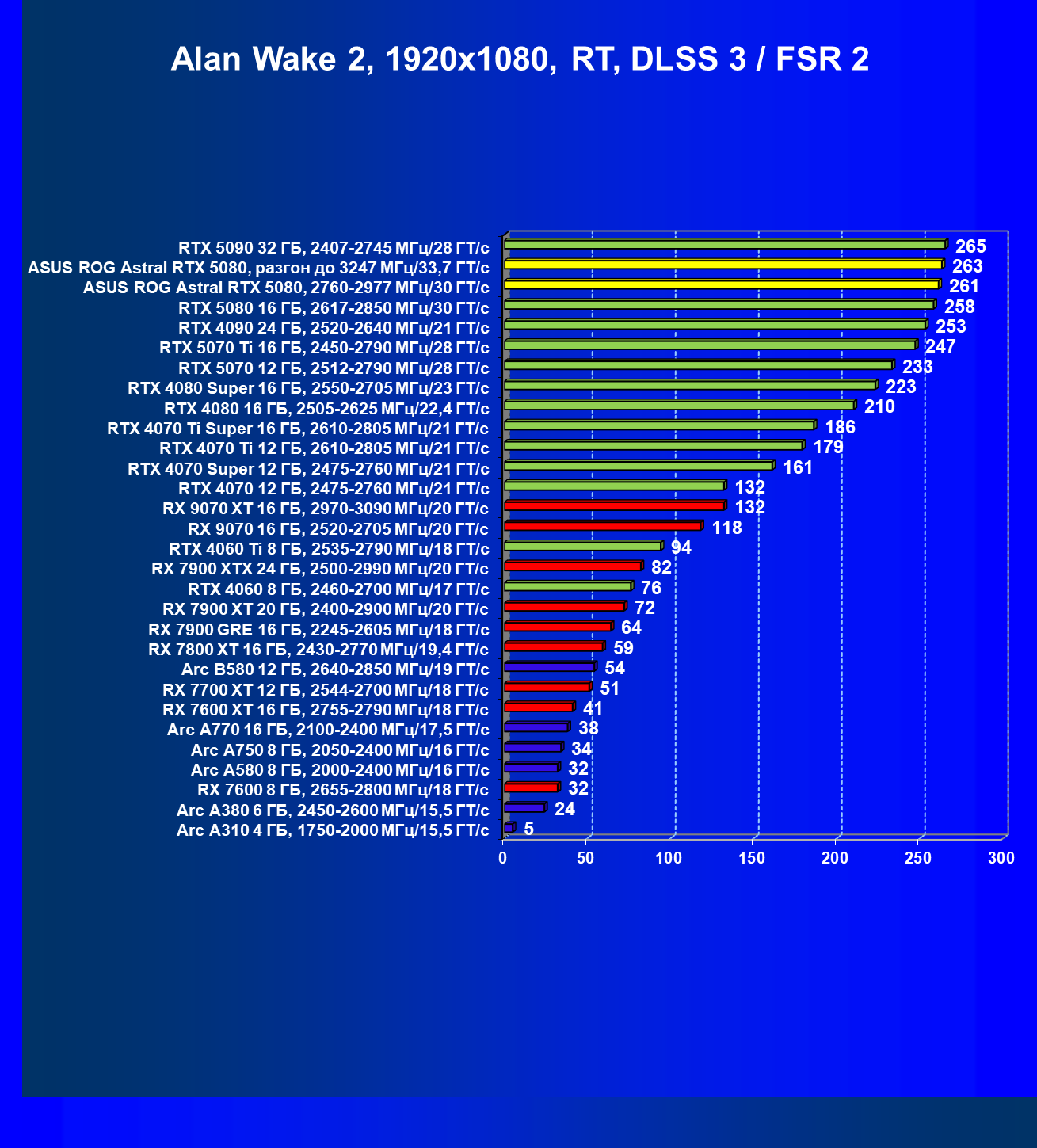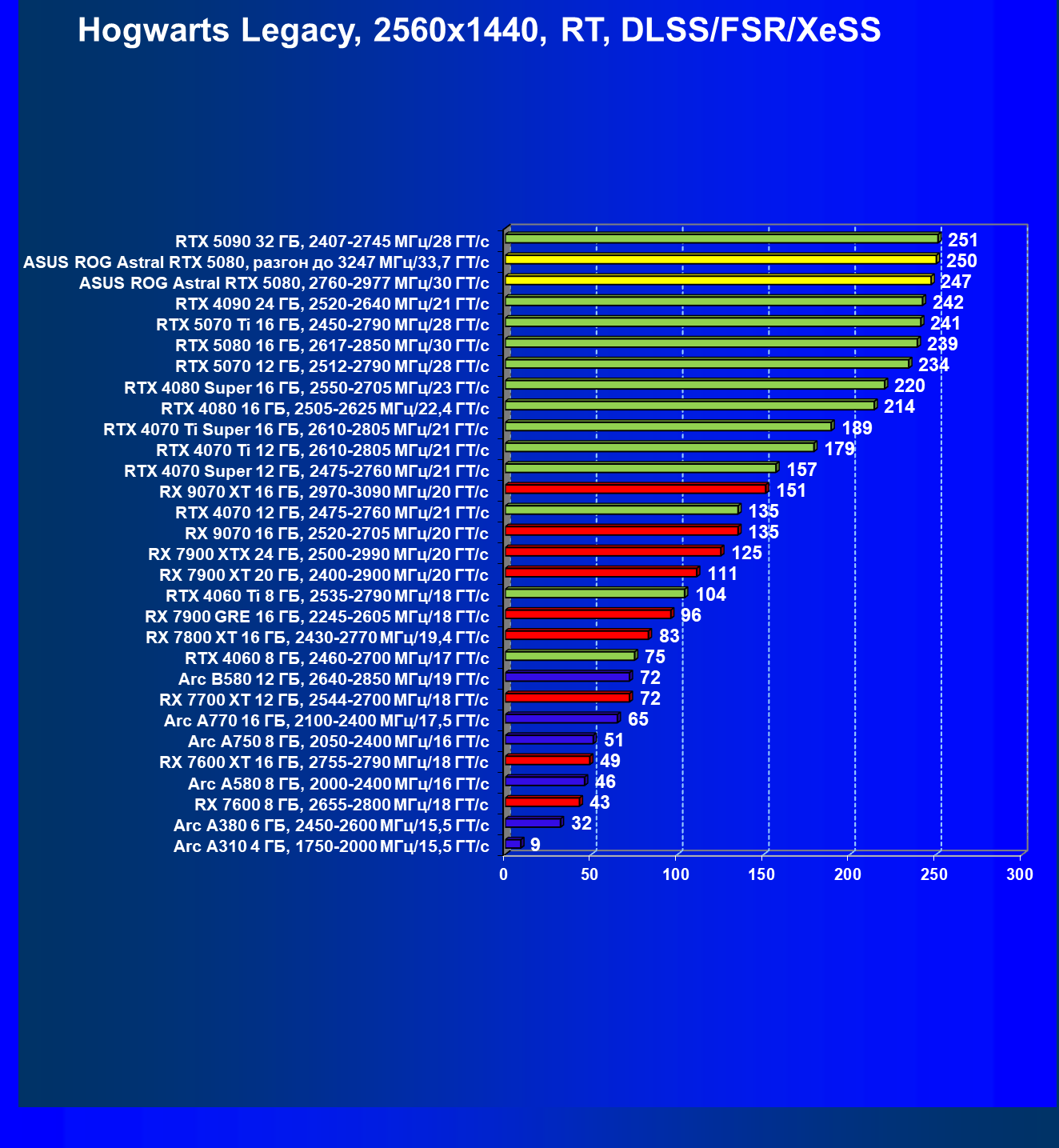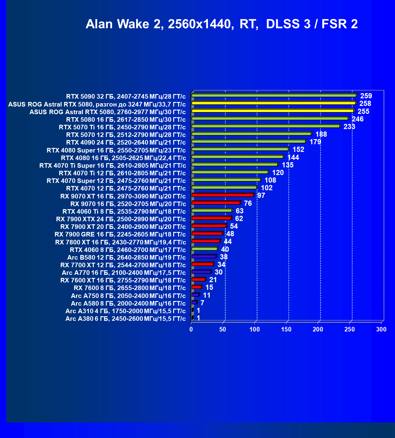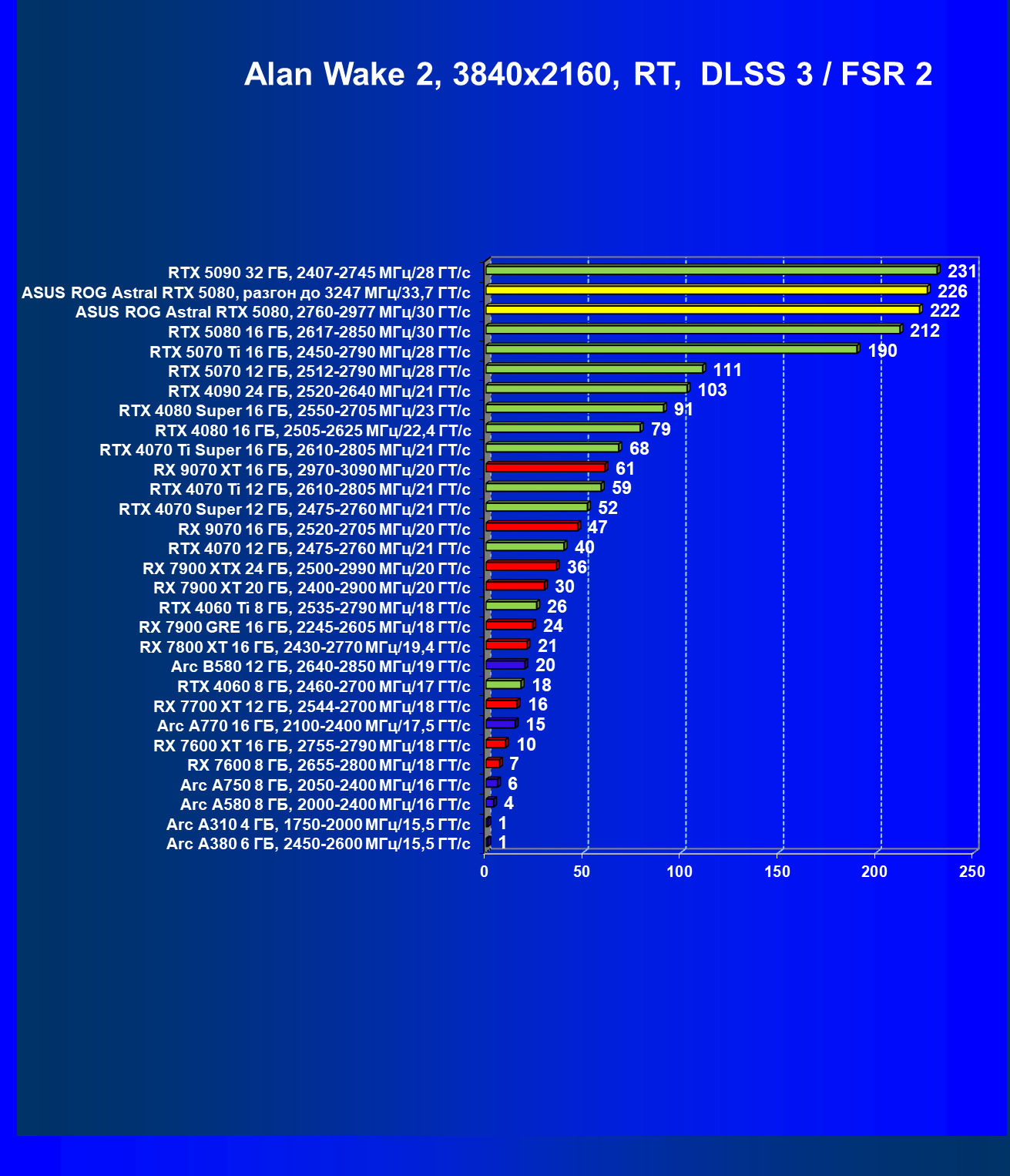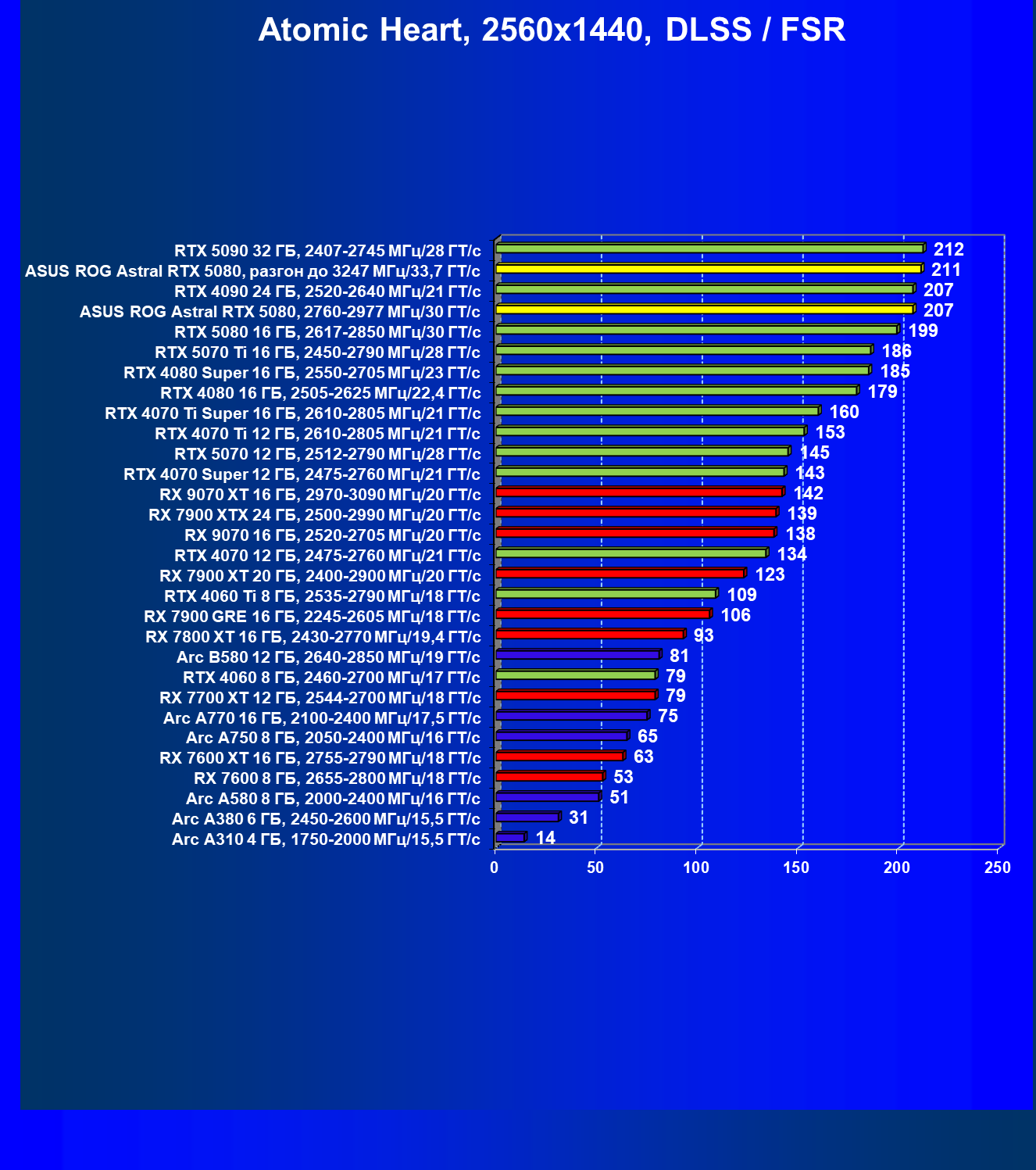 | 25 | Asus ROG Astral RTX 5080, разгон до 3247 МГц/33,7 ГТ/с | 341 | 6132 | 180 000 |