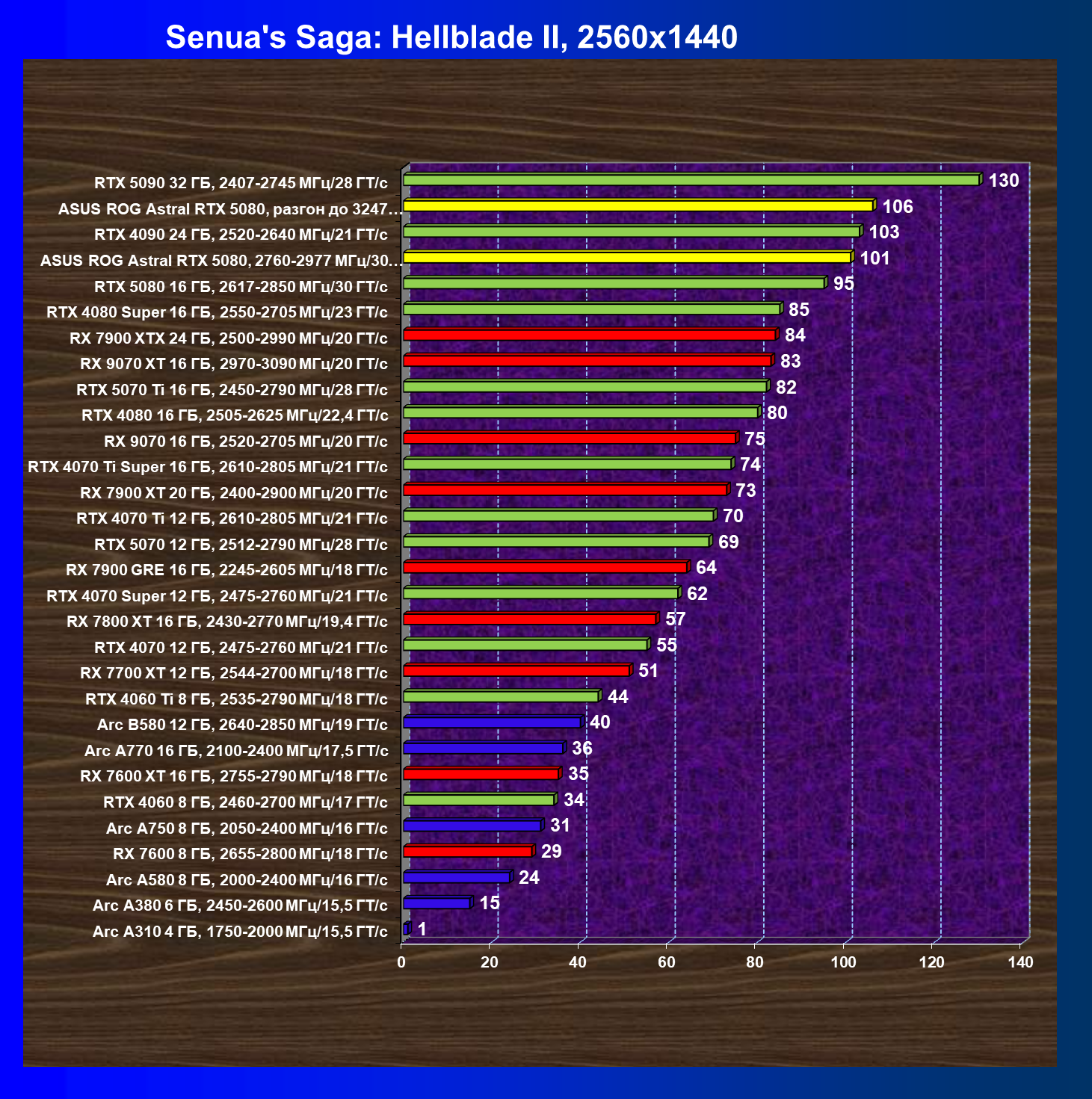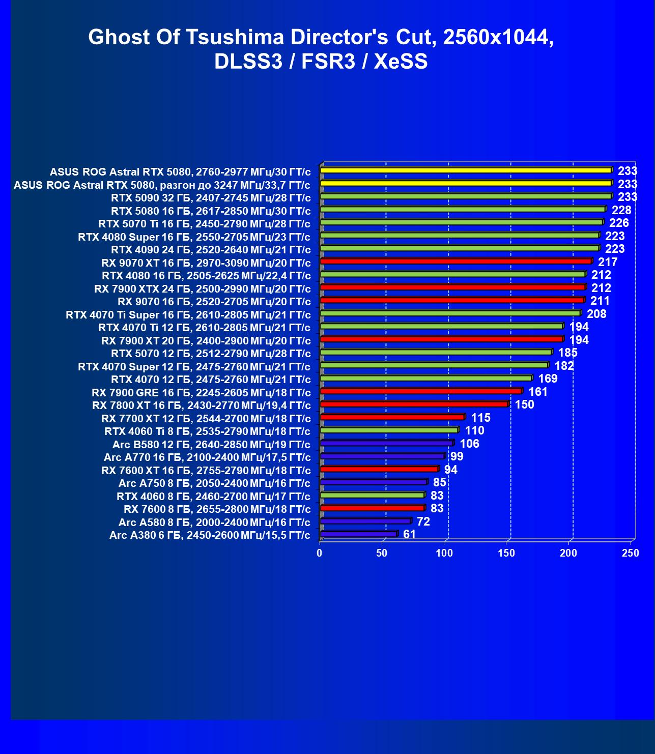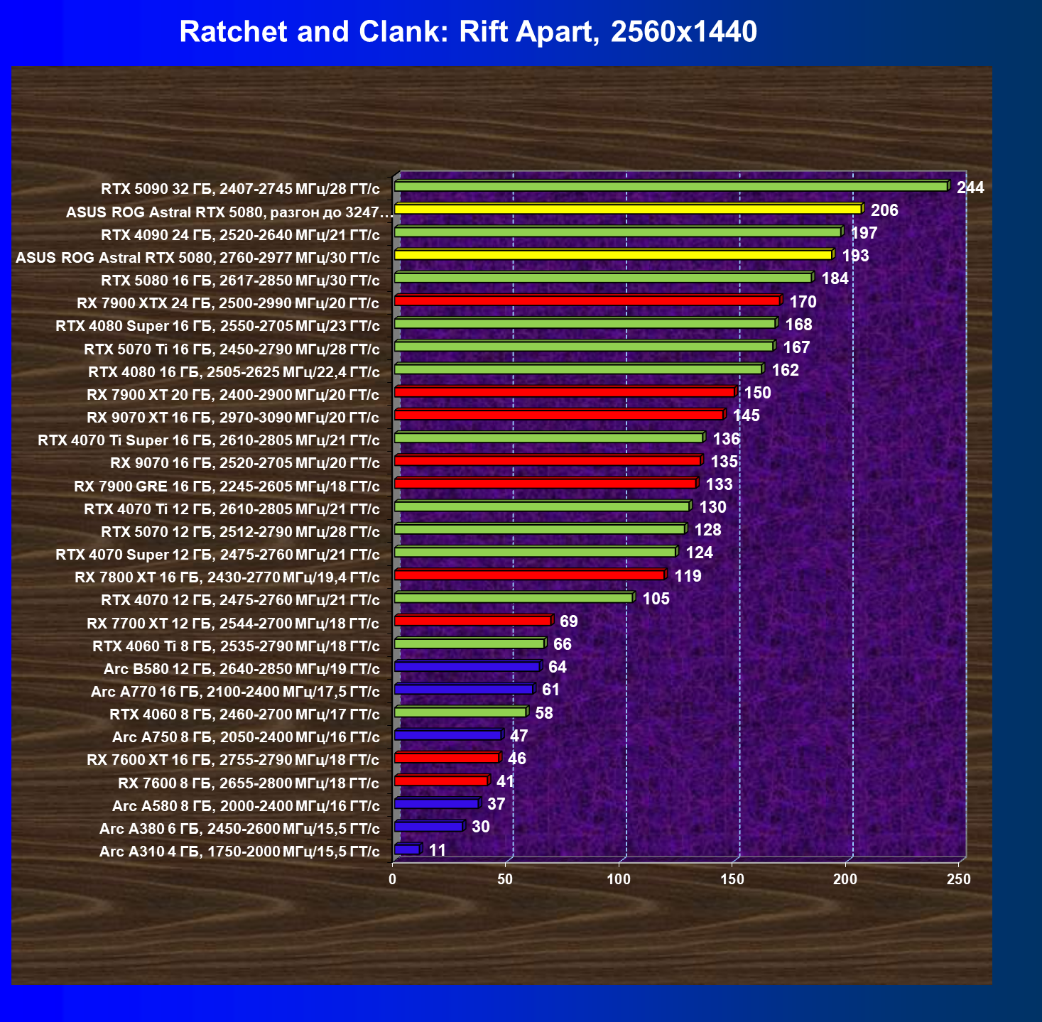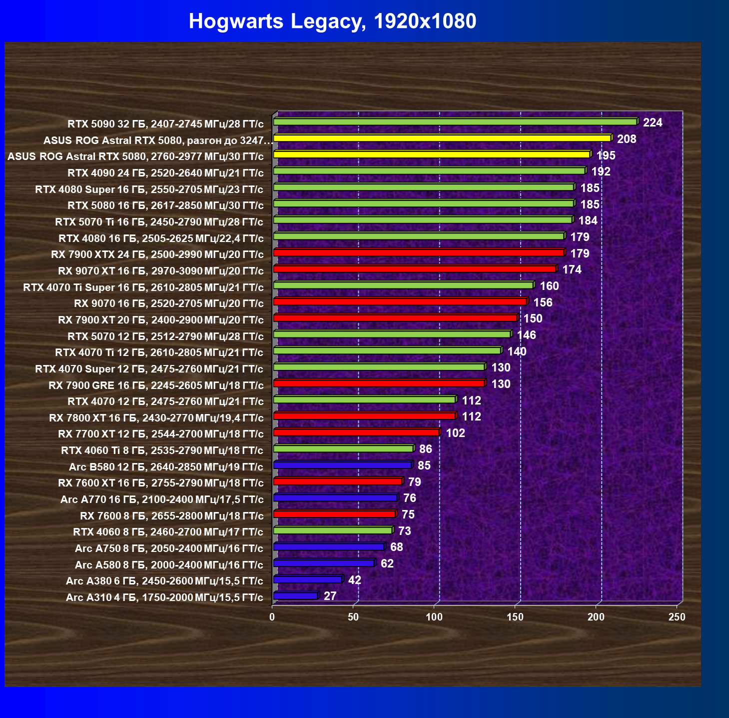 | 25 | Asus ROG Astral RTX 5080, разгон до 3247 МГц/33,7 ГТ/с | 341 | 6132 | 180 000 |