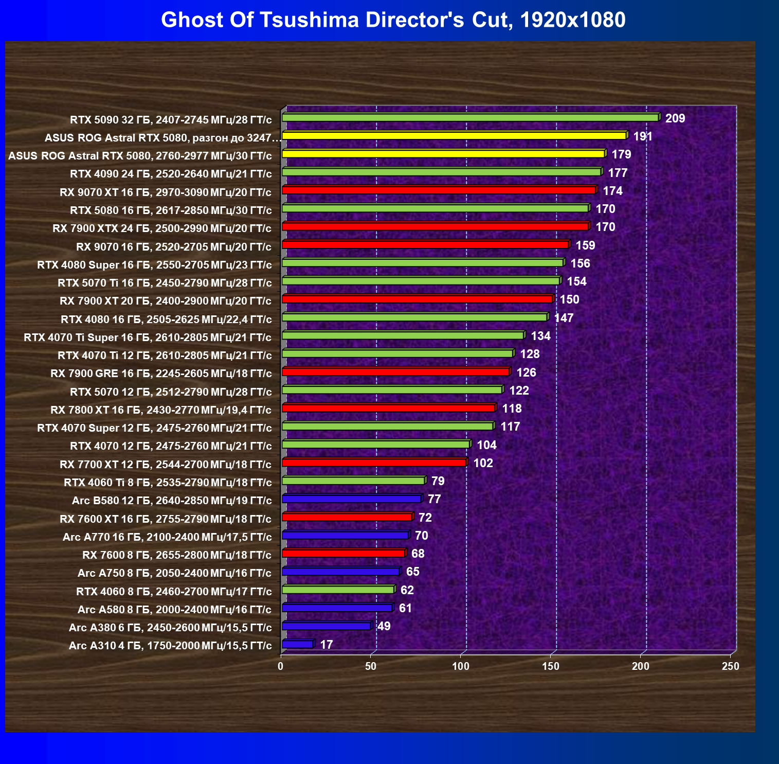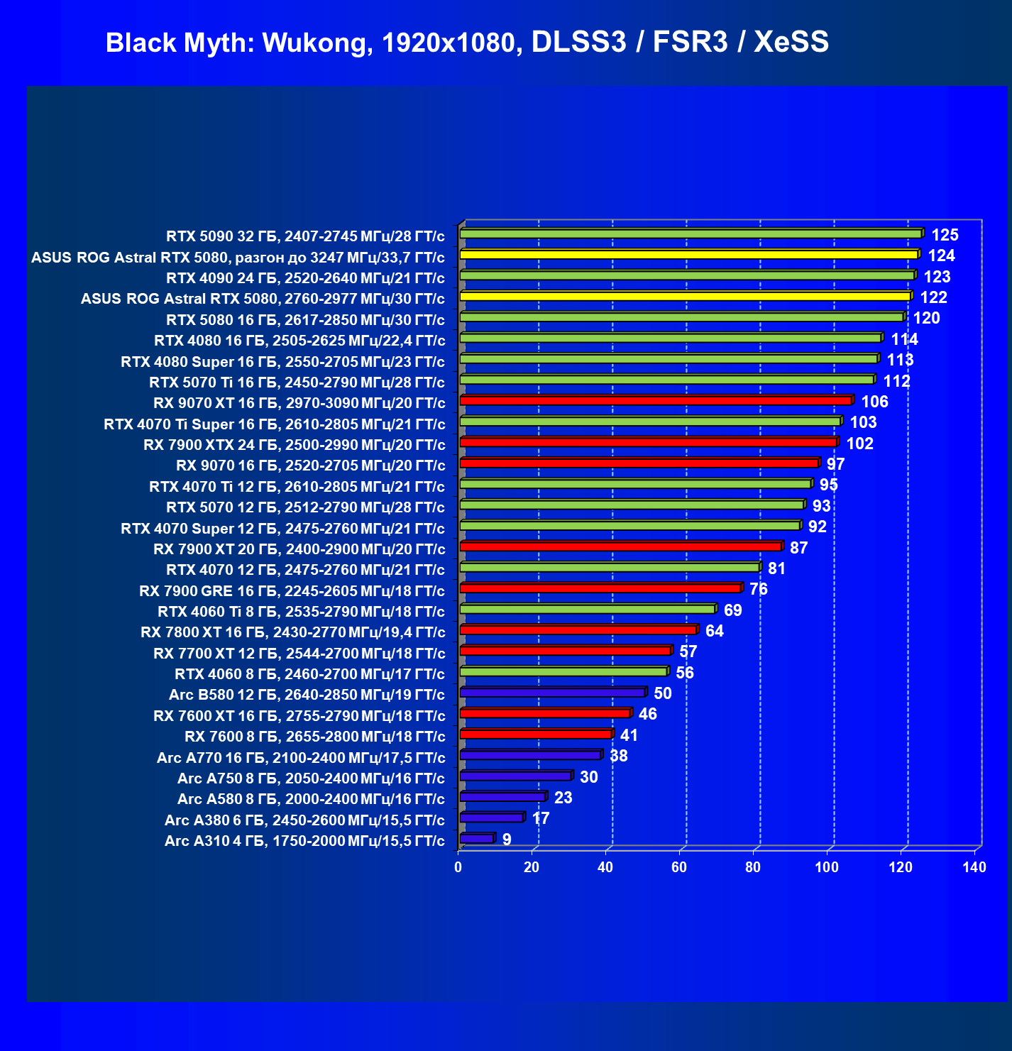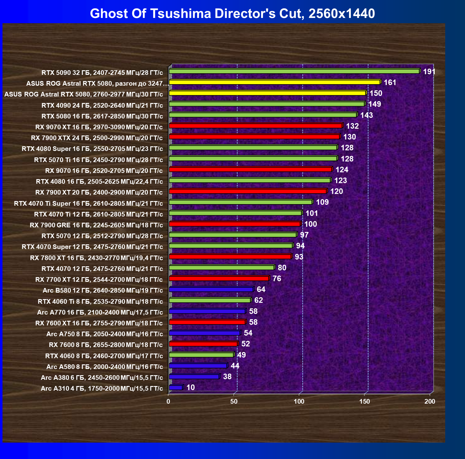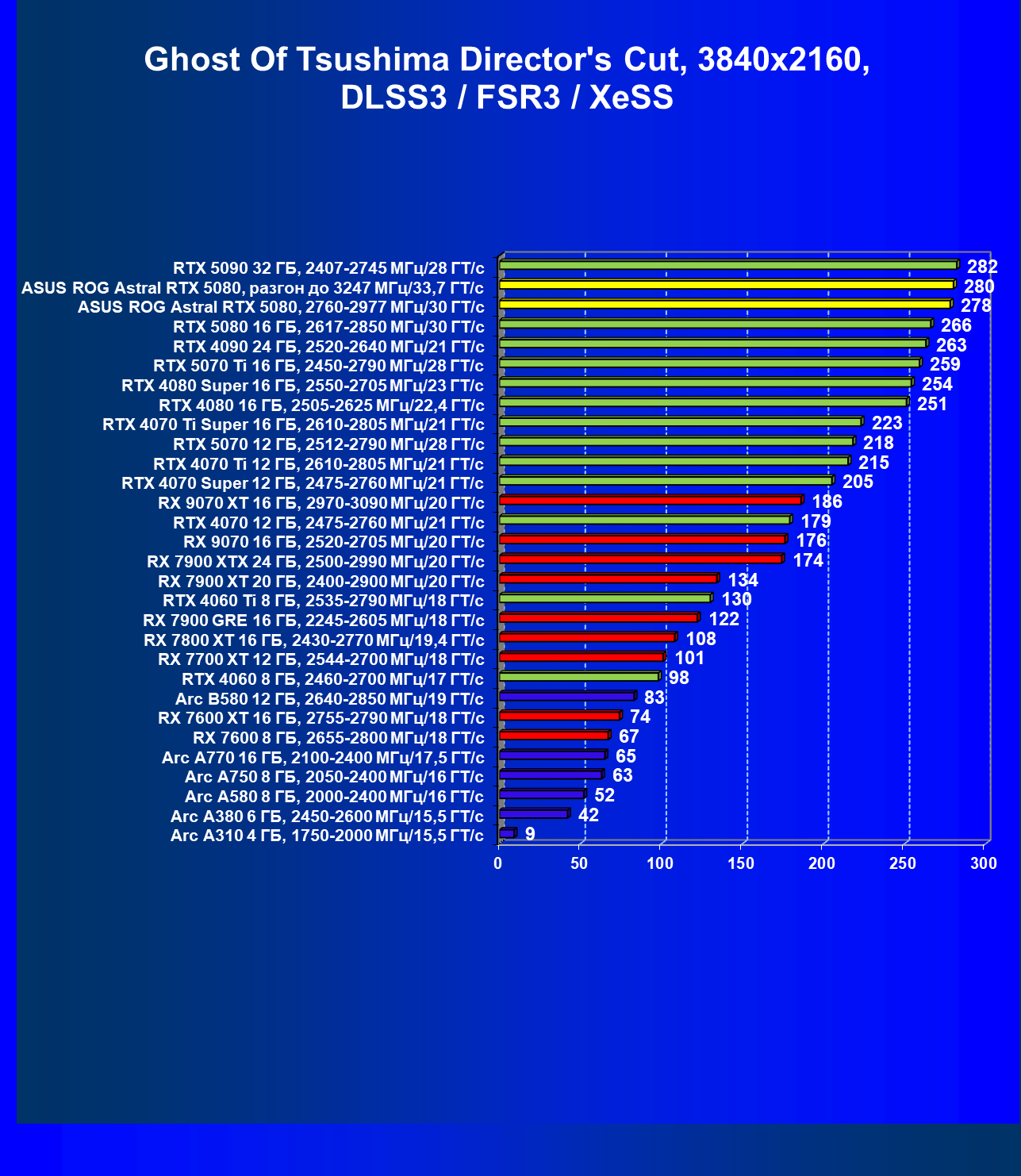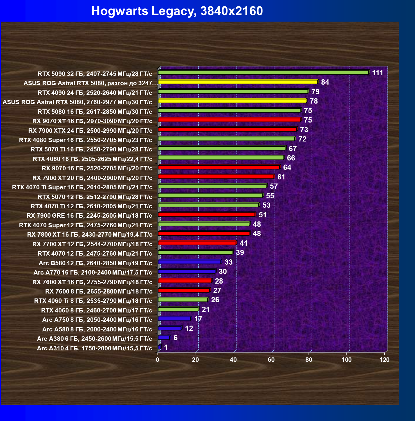 | 25 | Asus ROG Astral RTX 5080, разгон до 3247 МГц/33,7 ГТ/с | 341 | 6132 | 180 000 |