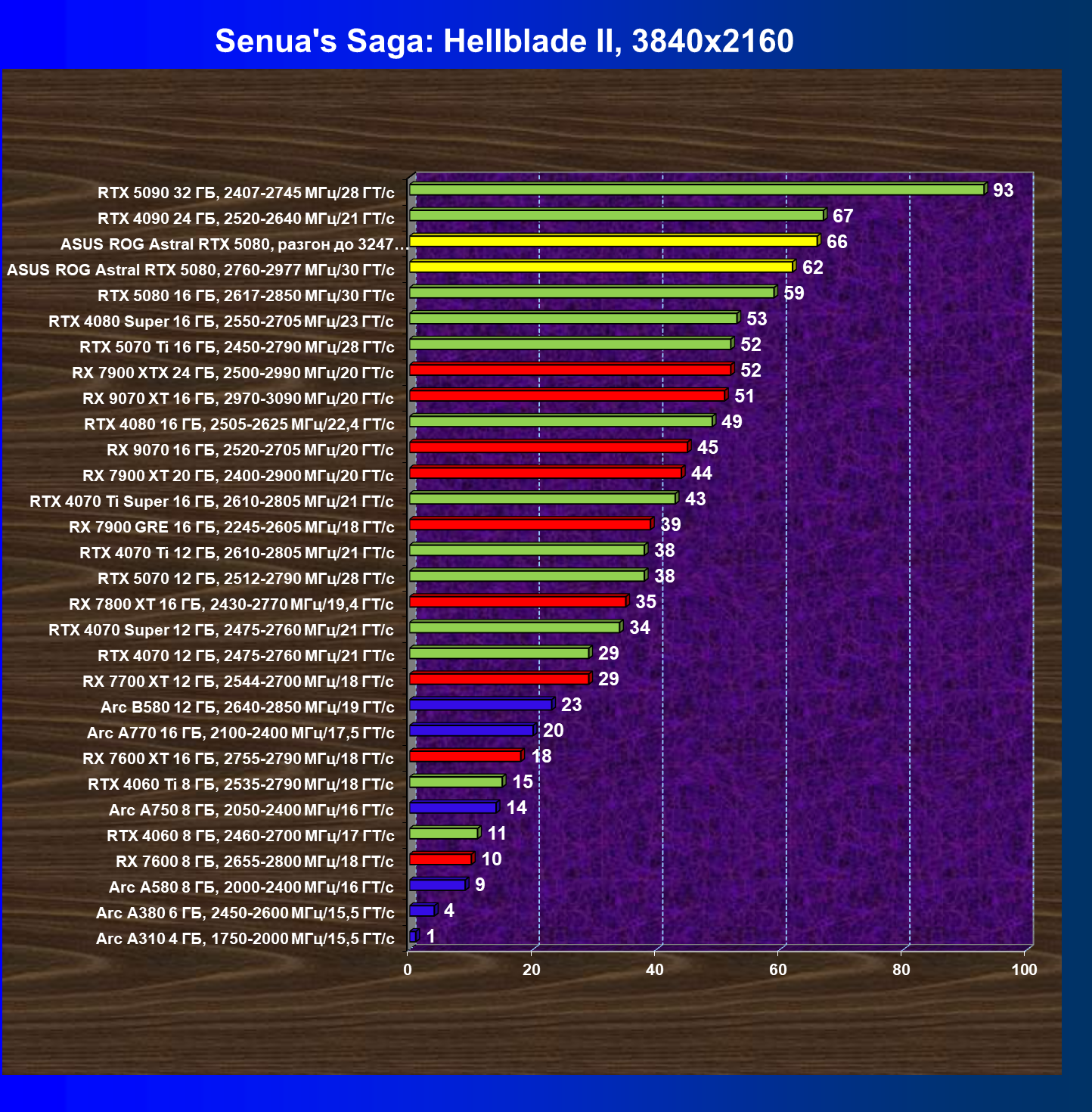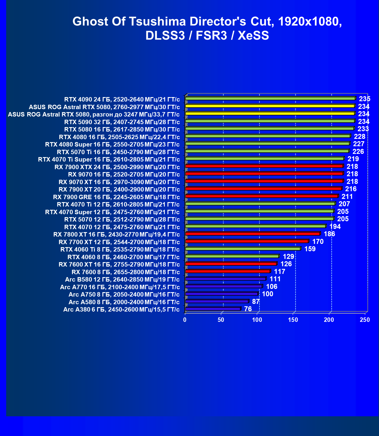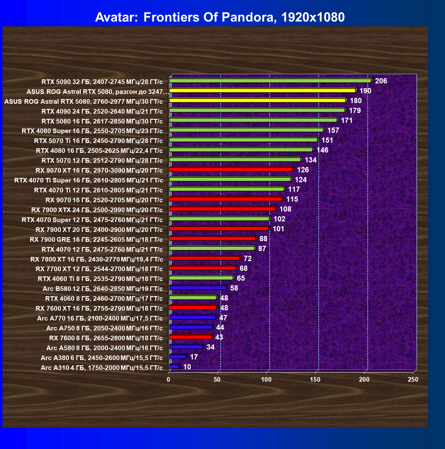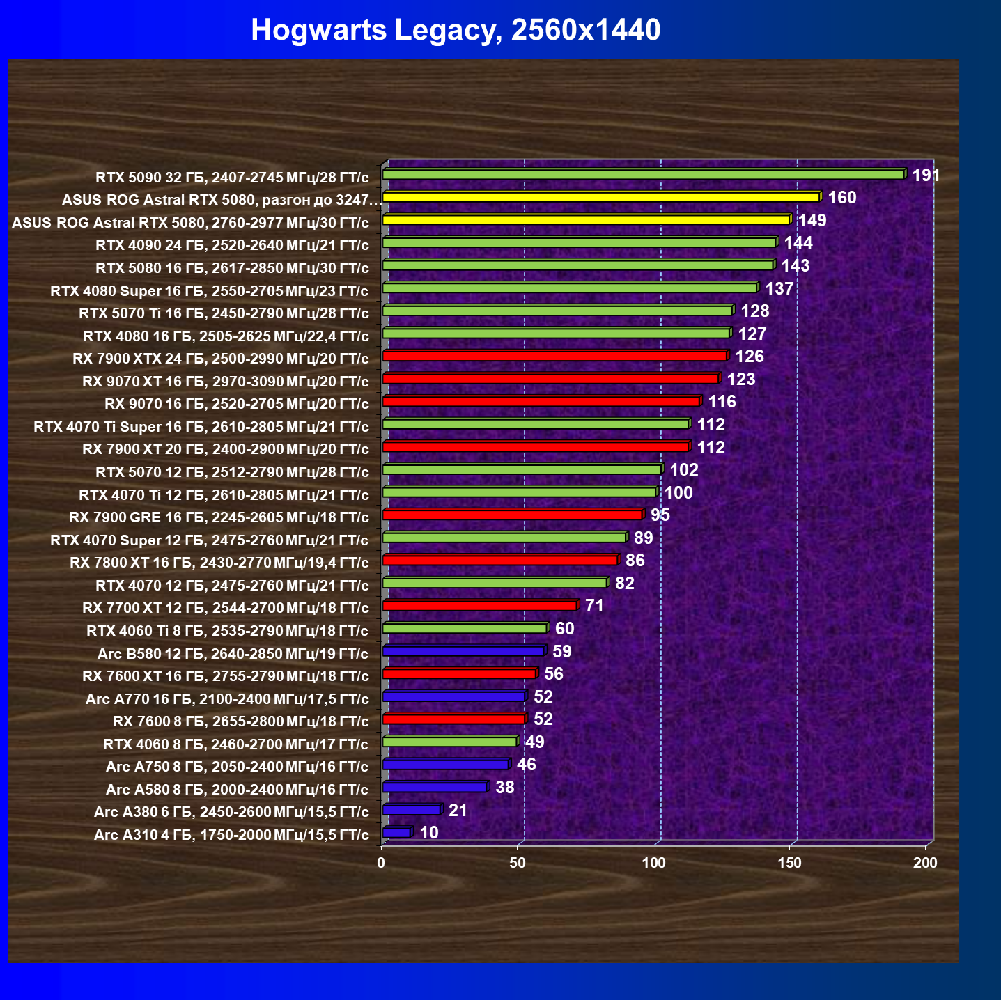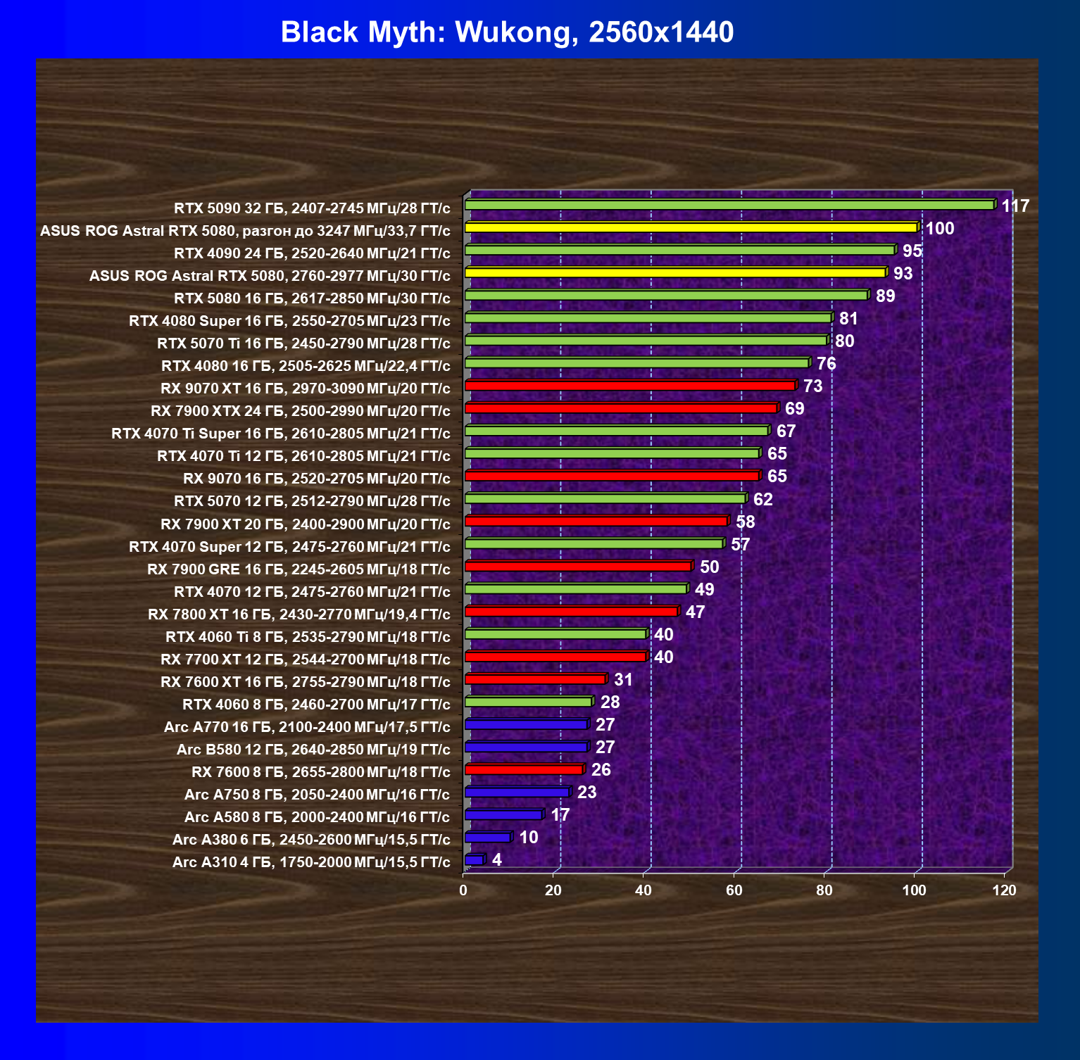 | 25 | Asus ROG Astral RTX 5080, разгон до 3247 МГц/33,7 ГТ/с | 341 | 6132 | 180 000 |