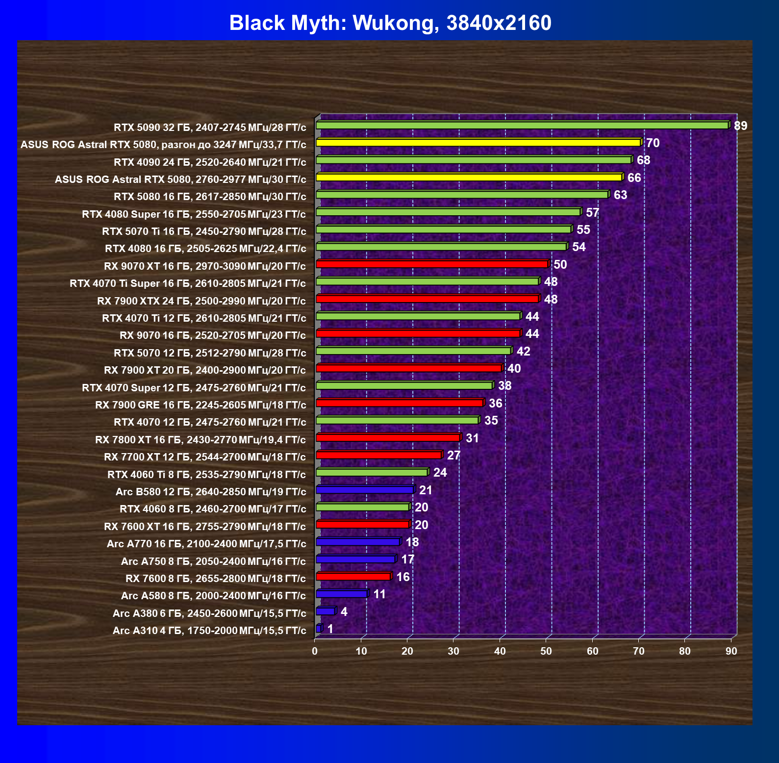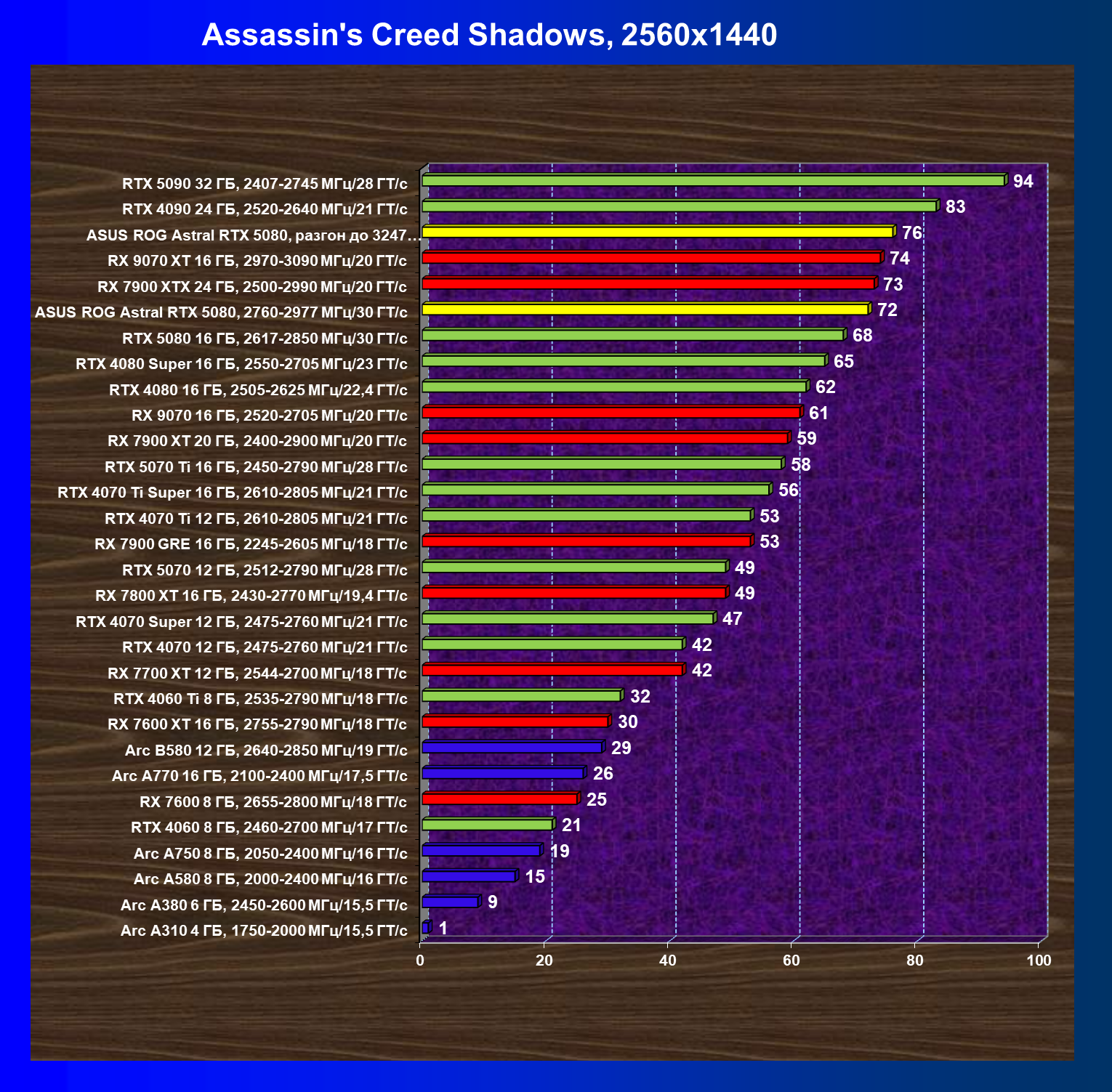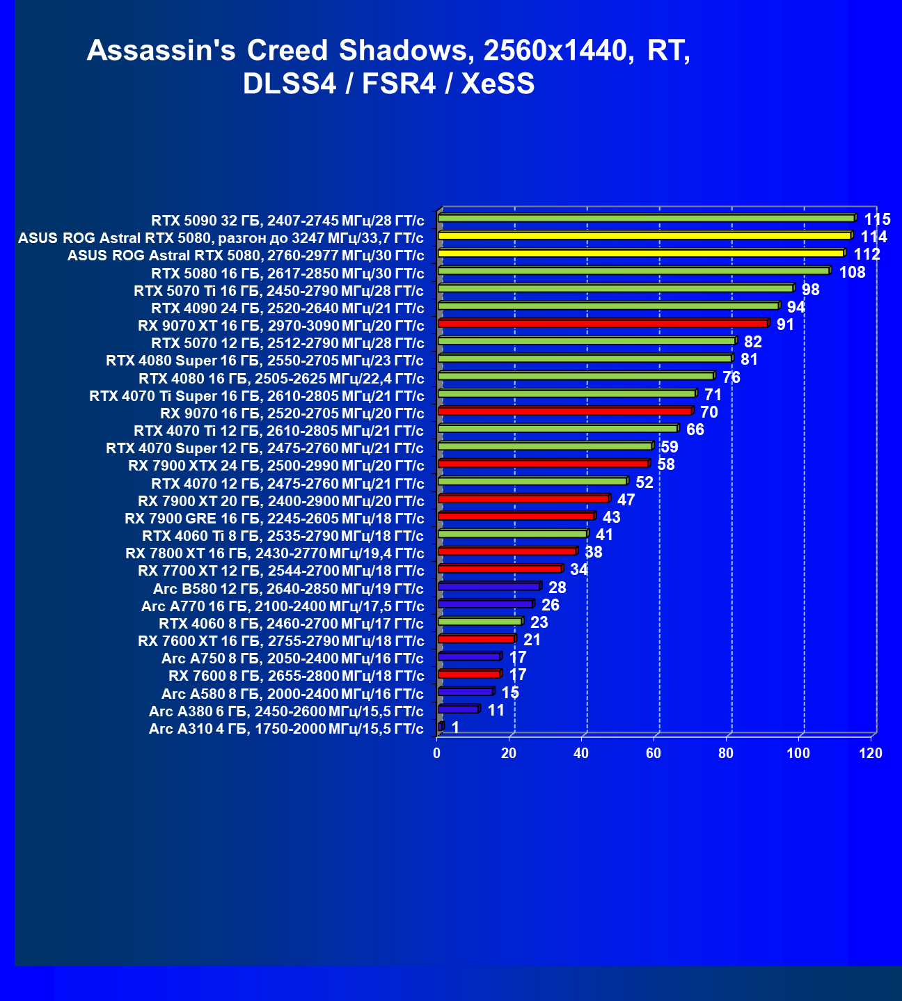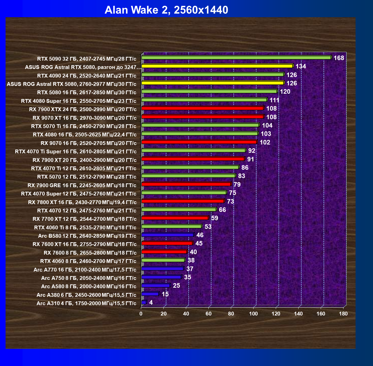 | 03 | Asus ROG Astral RTX 5080, 2760—2977 МГц/30 ГТ/с | 13838 | 769 | 180 000 |