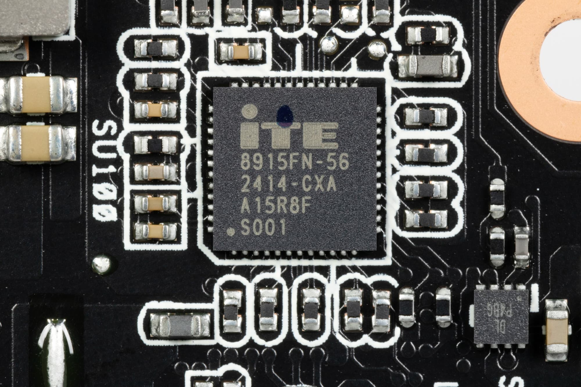 На оборотной стороны PCB имеется контроллер для мониторинга (отслеживания напряжений и температур) On Semi.