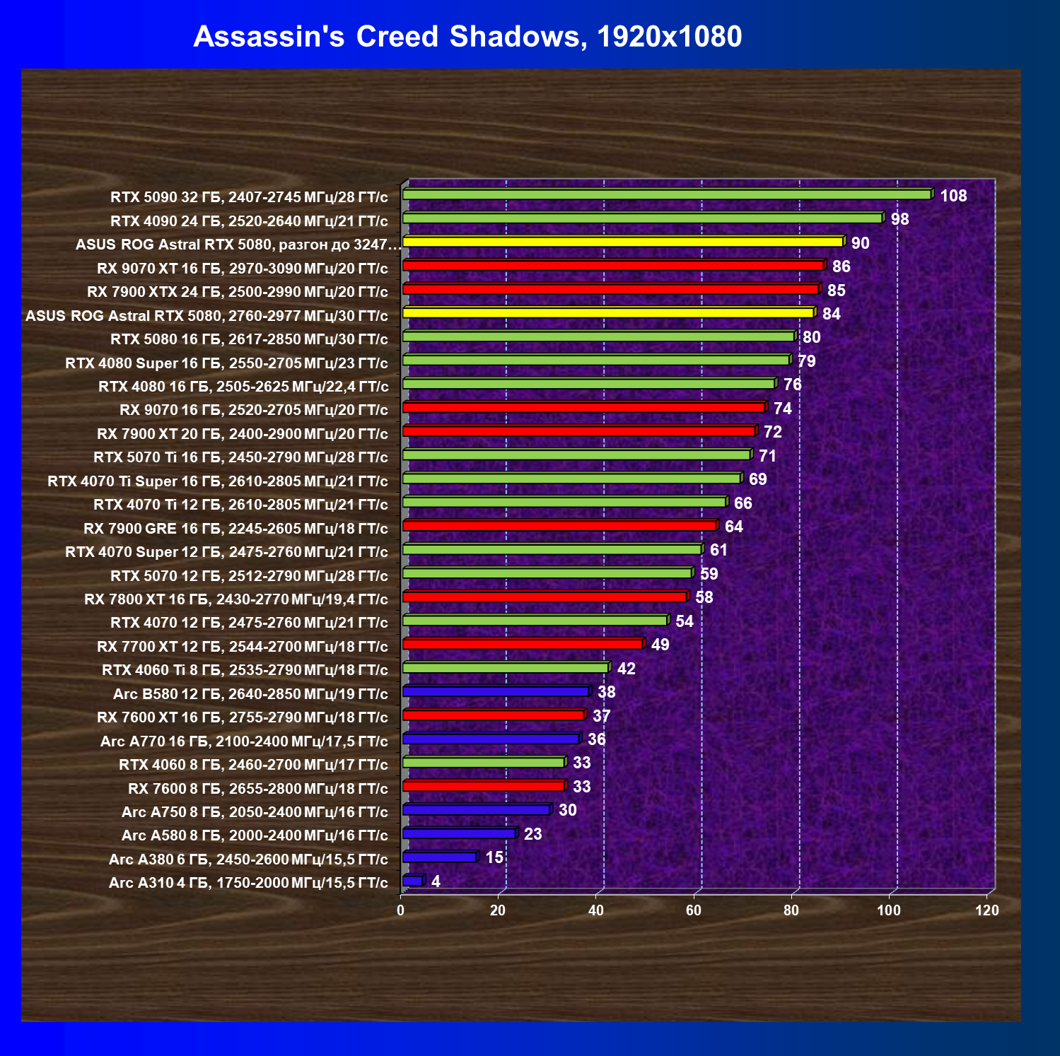 | 04 | Asus ROG Astral RTX 5080, 2760—2977 МГц/30 ГТ/с | 5743 | 319 | 180 000 |