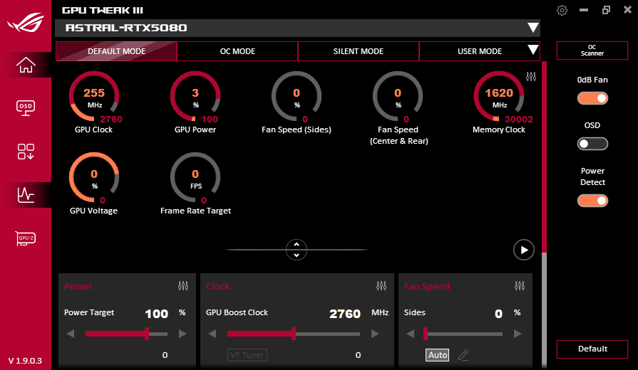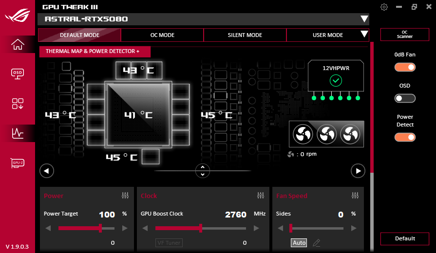 Карта оснащена тремя контроллерами напряжения и тока от Texas Instruments, каждый из которых имеет светодиод-индикатор, предупреждающий о наличии каких-либо проблем с питанием. Более того, информацию от этих контроллеров использует фирменная утилита Asus GPU Tweak III, которая сможет известить пользователя о проблемах.