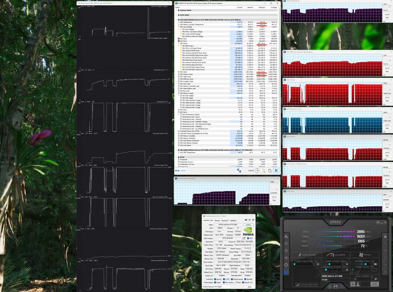 | 05 | RTX 5070 Ti 16 ГБ, 2450—2790 МГц/28 ГТ/с | 11868 | 1175 | 101 000 |