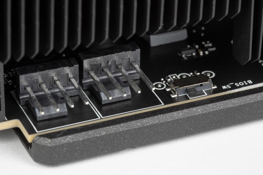 Рядом с переключателем BIOS на фото выше можно увидеть два коннектора Fan Connect II для подключения корпусных вентиляторов, которые будут работать в зависимости от нагрева видеокарты. Управляет ими контроллер ITE.