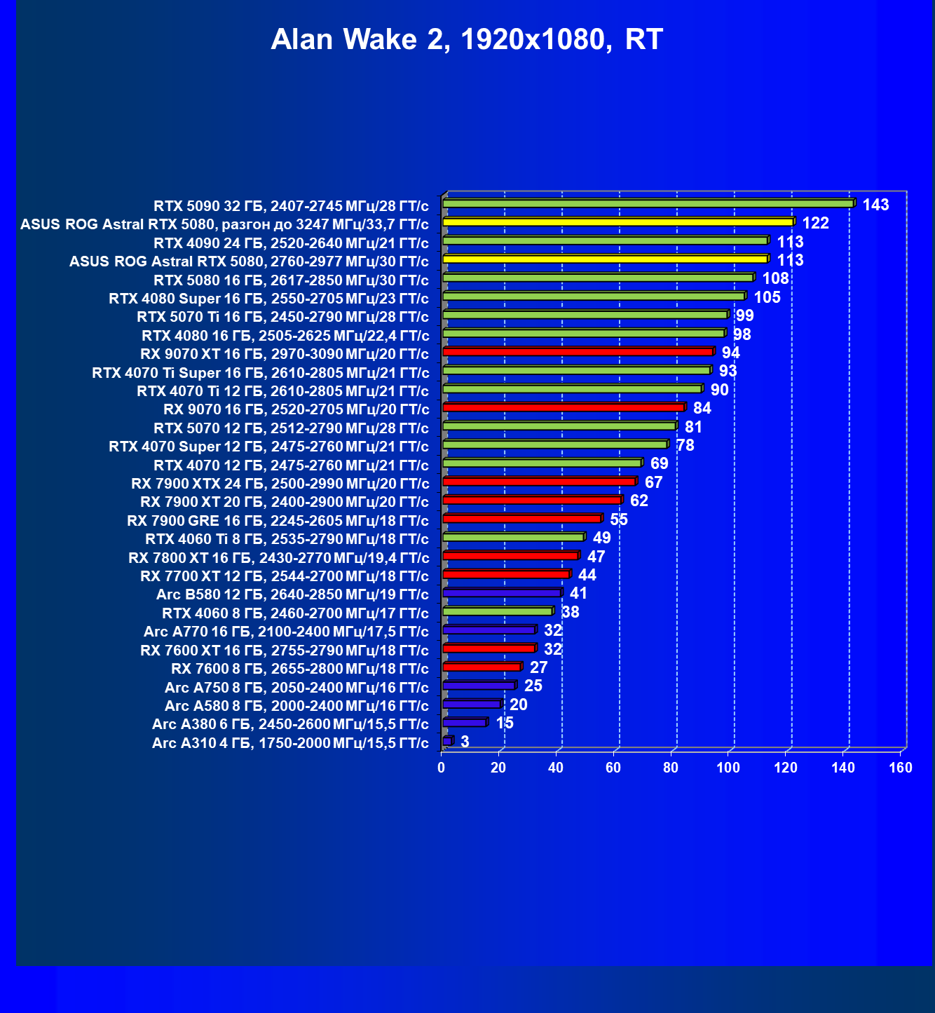 | 09 | RTX 5070 Ti 16 ГБ, 2450—2790 МГц/28 ГТ/с | 4886 | 484 | 101 000 |