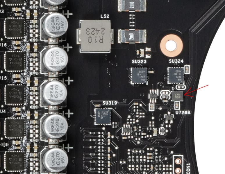 20 фазами питания ядра управляет ШИМ-контроллер MP29816 (Monolithic Power Systems).