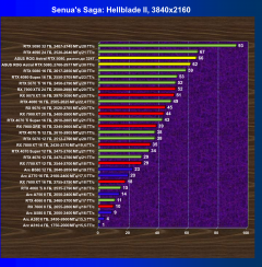 Я попробовал ручной разгон (предел лимита потребления можно поднять на 12%) и получил в BIOS P максимальные частоты 3247/33684 МГц, что обеспечило прирост в играх в разрешении 4K в среднем на 11,5% относительно референсных значений. При этом энергопотребление карты выросло до 451 Вт.