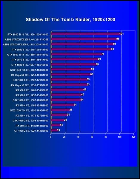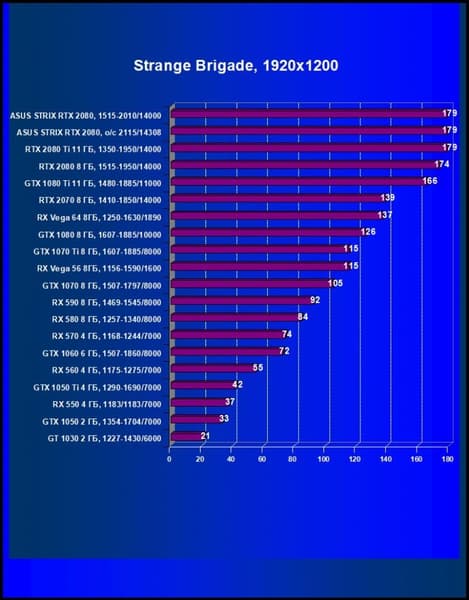 | 11 | Asus Strix RTX 2080, 1515—2010/14000 (OC mode) | 238 | 1536 | 64 500 |