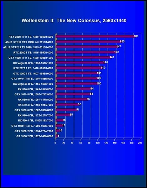 Рейтинг ускорителей iXBT.com демонстрирует нам функциональность видеокарт друг относительно друга и нормирован по самому слабому ускорителю — GeForce GT 1030 (то есть сочетание скорости и функций GT1030 приняты за 100%). Рейтинги ведутся по 20 ежемесячно исследуемым нами акселераторам в рамках проекта Лучшая видеокарта месяца. Из общего списка выбирается группа карт для анализа, куда входят RTX 2080 и его конкуренты. Учитывая, что RTX 2080 в основном нацелен на использование в разрешении 2560×1440, в формировании рейтинга полезности участвовали показатели производительности видеокарт именно в этом разрешении.