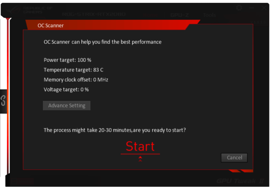 Для полноценного разгона мы рекомендуем запустить Nvidia Scanner (встроенный в данную утилиту), который поможет определить безопасный максимум работы ядра и памяти, то есть самый быстрый режим работы в 3D.