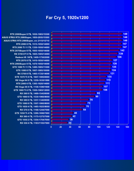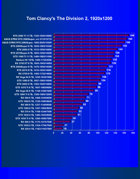 Рейтинг ускорителей iXBT.com демонстрирует нам функциональность видеокарт друг относительно друга и нормирован по самому слабому ускорителю — Radeon RX 550 (то есть сочетание скорости и функций RX 550 приняты за 100%). Рейтинги ведутся по 28 ежемесячно исследуемым нами акселераторам в рамках проекта Лучшая видеокарта месяца. Из общего списка выбирается группа карт для анализа, куда входят RTX 2080 Super и его конкуренты.