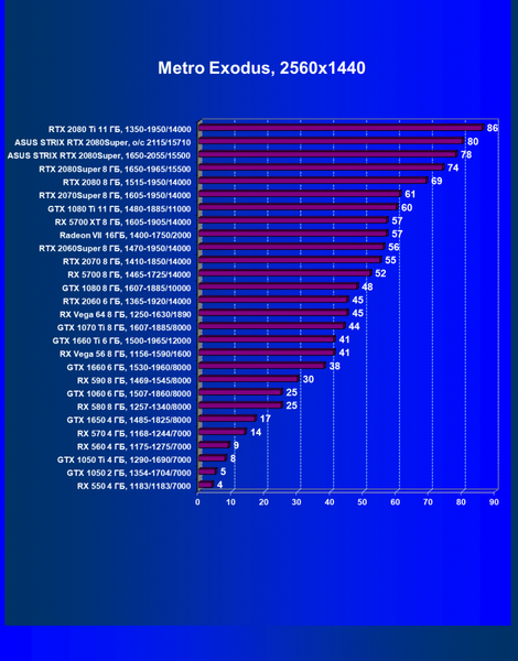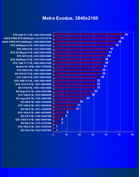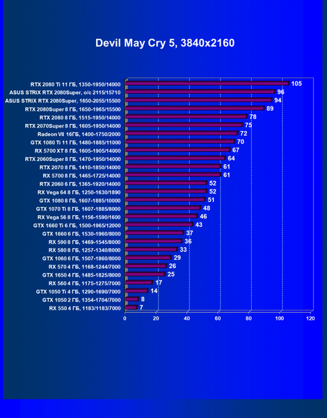 | 11 | Asus Strix RTX 2080 Super, 1650—2055/15500 | 369 | 2103 | 57 000 |