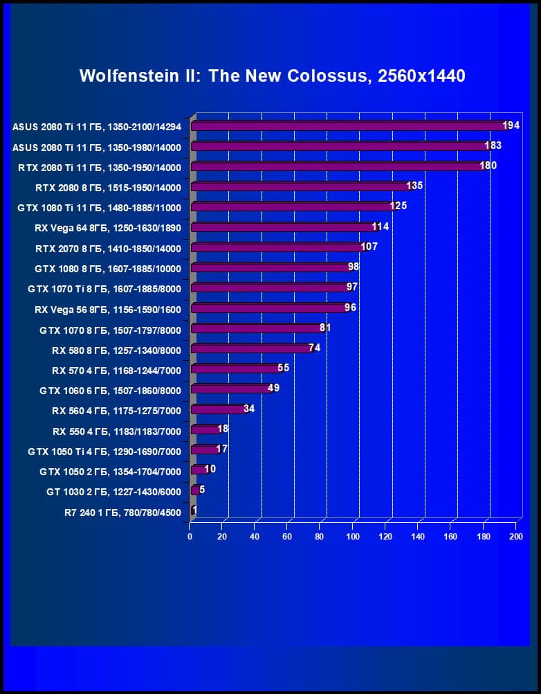 Возвращаясь к результатам RTX 2080 Ti, отметим, что соперники логично отстают: GTX 1080 Ti — второй, а RX Vega 64 — на третьем месте.