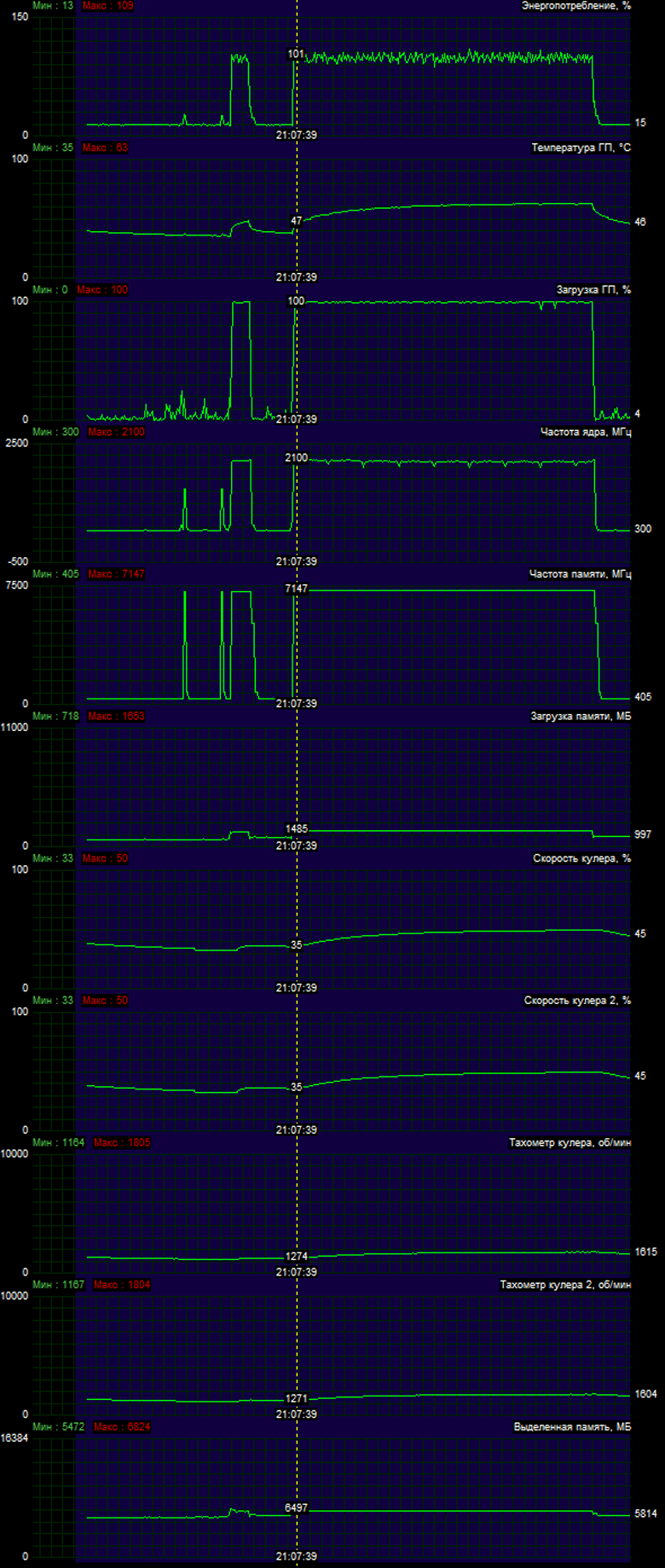 Режим разгона с помощью Nvidia Scanner: 2100/14294 МГц:
