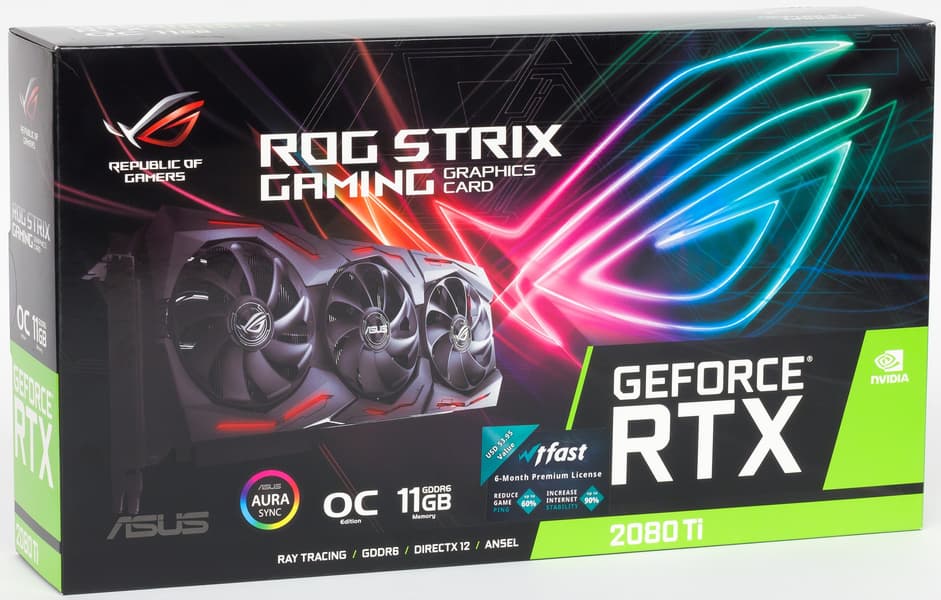 Объект исследования: Серийно выпускаемый ускоритель трехмерной графики (видеокарта) Asus ROG Strix GeForce RTX 2080 Ti OC Edition 11 ГБ 352-битной GDDR6