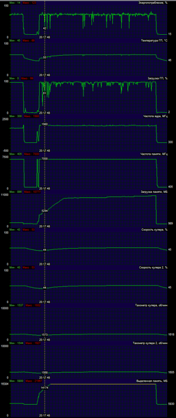 В данном случае GPU нагревался до 80 градусов при незначительном повышении уровня шума. Карта стабильно отработала несколько часов под нагрузкой на таких частотах. (Маркер на мониторинге выше выставлен на максимальную частоту GPU, а не максимум температуры GPU.)