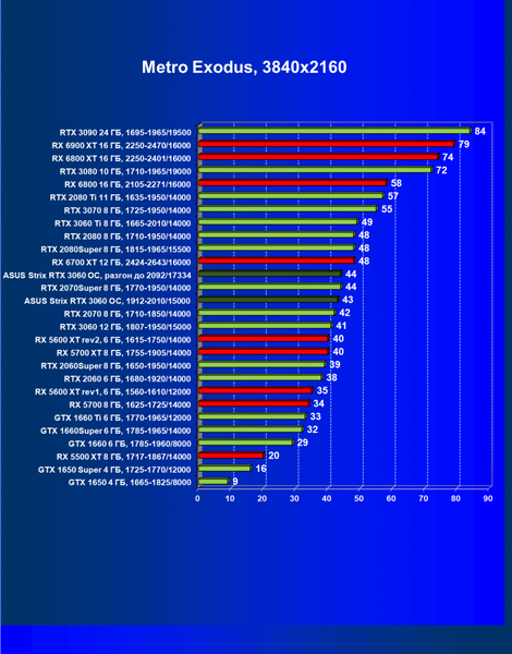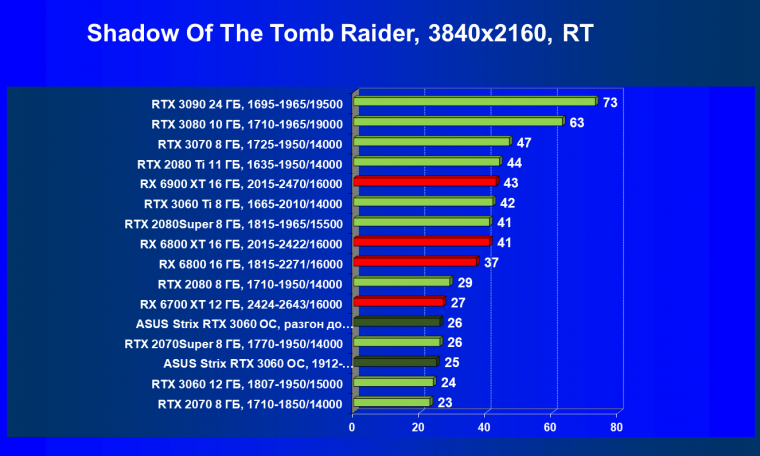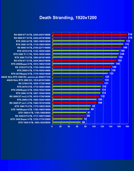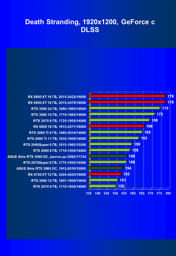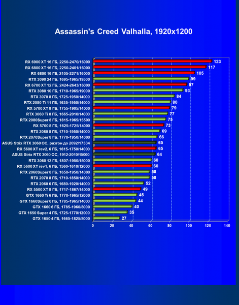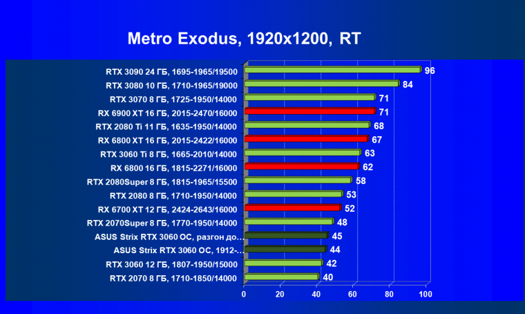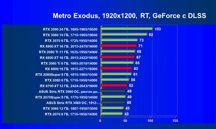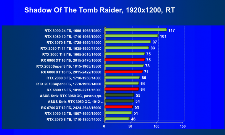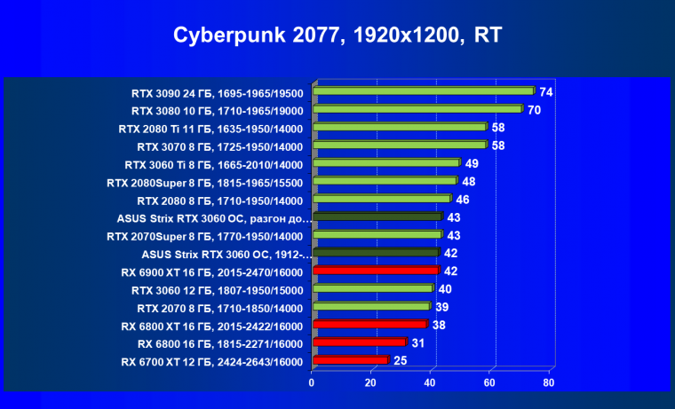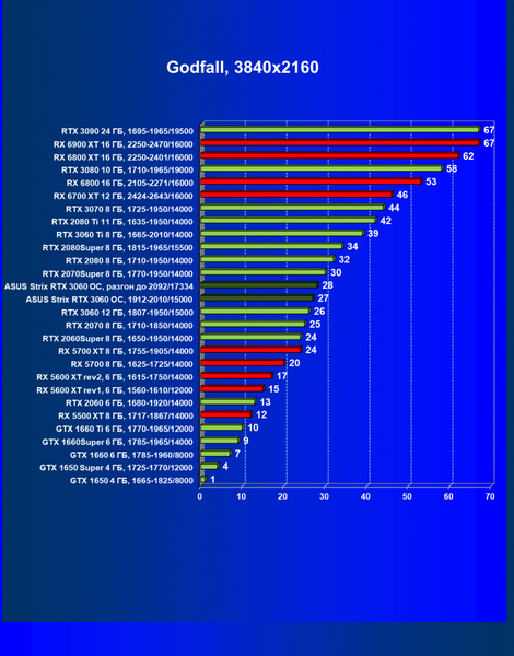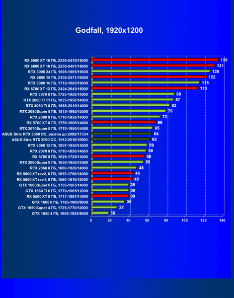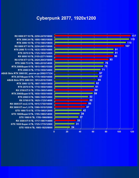 | 16 | RX 6700 XT 12 ГБ, 2424—2643/16000 | 70 | 7 | 104 000 |