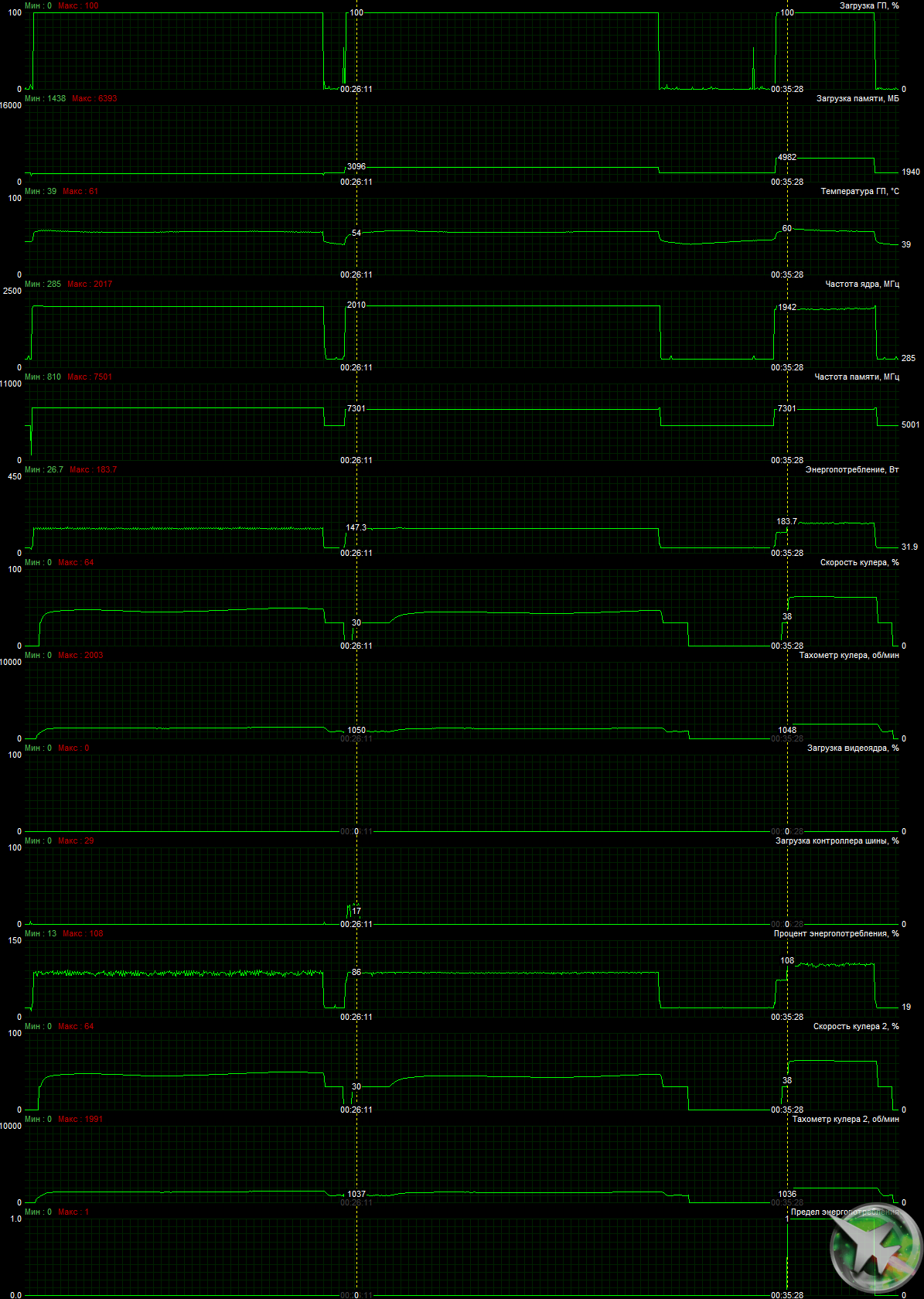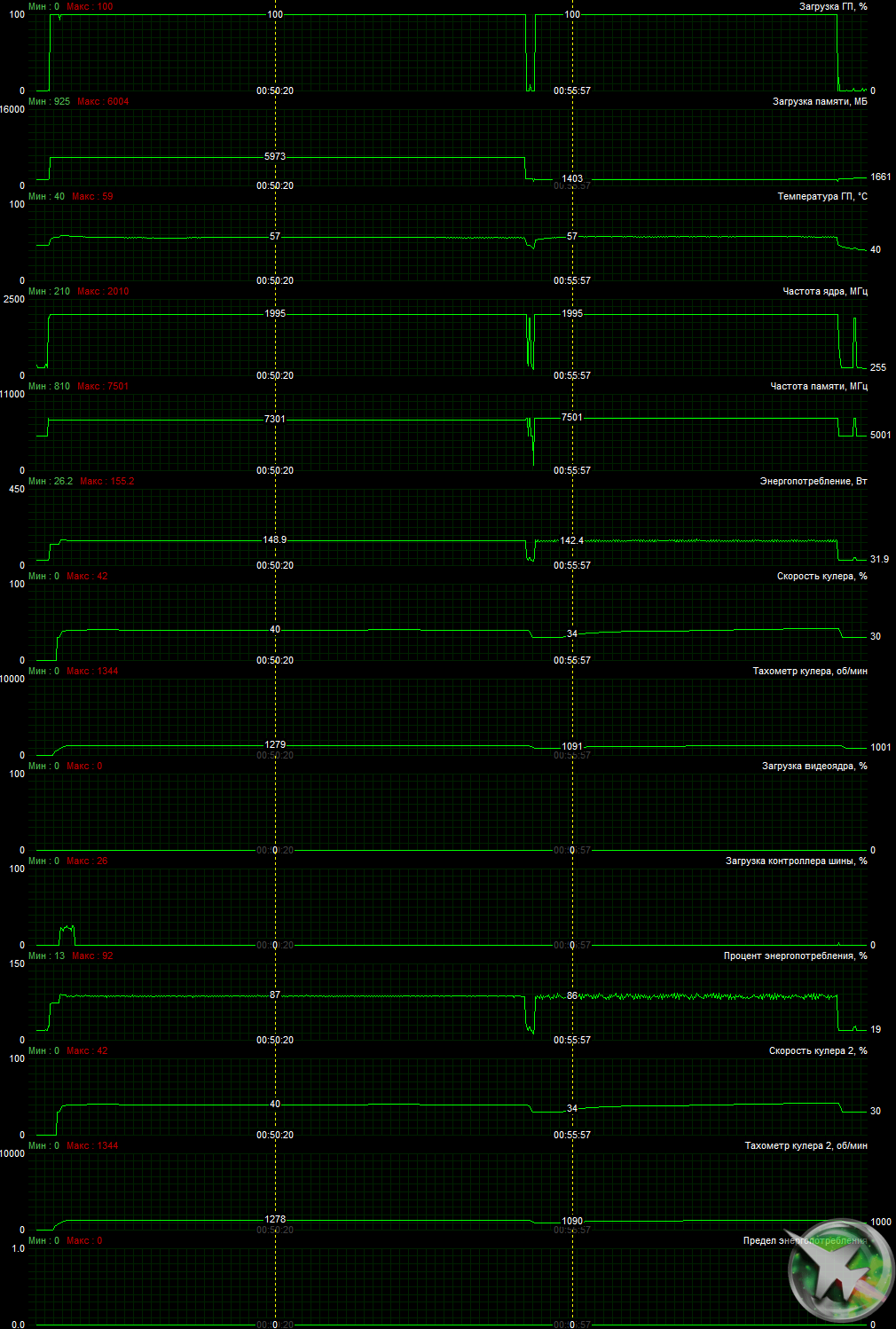 | 07 | RTX 2070 Super 8 ГБ, 1770—1950/14000 | 9 | 110 | 120 000 |