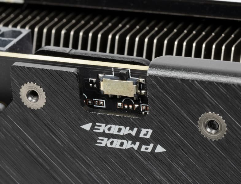 Карта имеет двойной BIOS, что уже традиционно для топовых решений Asus. На торце карты есть переключатель, в разных версиях BIOS (они названы Performance mode и Quiet mode — производительный и тихий режимы) заданы разные кривые работы вентиляторов.