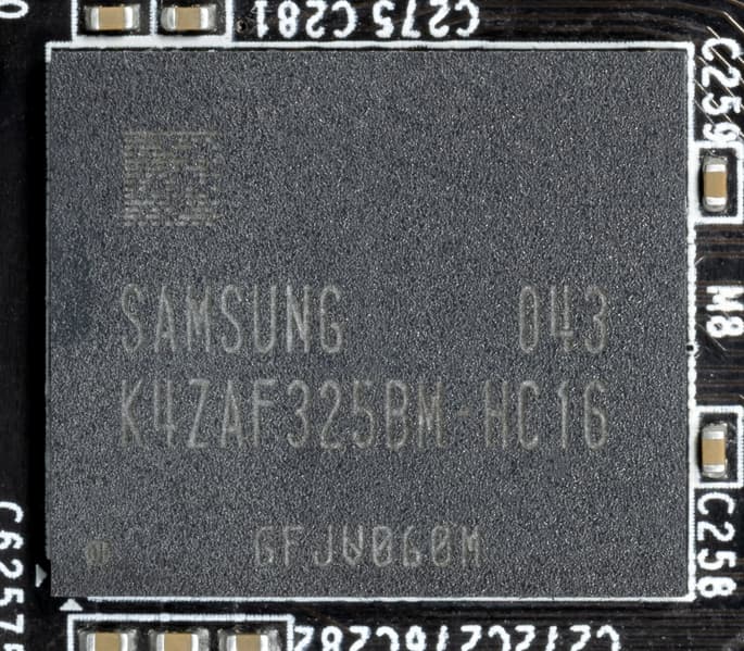 Карта имеет 12 ГБ памяти GDDR6 SDRAM, размещенной в 6 микросхемах по 16 Гбит на лицевой стороне PCB. Микросхемы памяти Samsung (GDDR6, K4Z80325BC-HC16) рассчитаны на условную номинальную частоту работы в 8000 (16000) МГц.