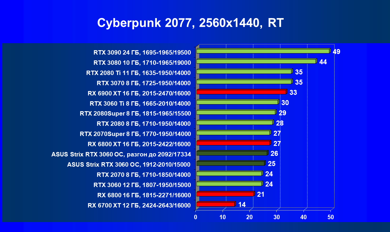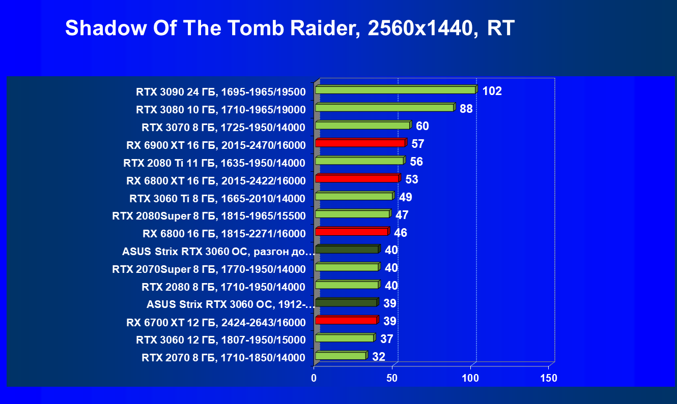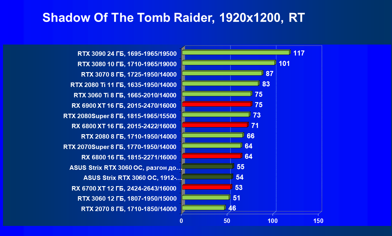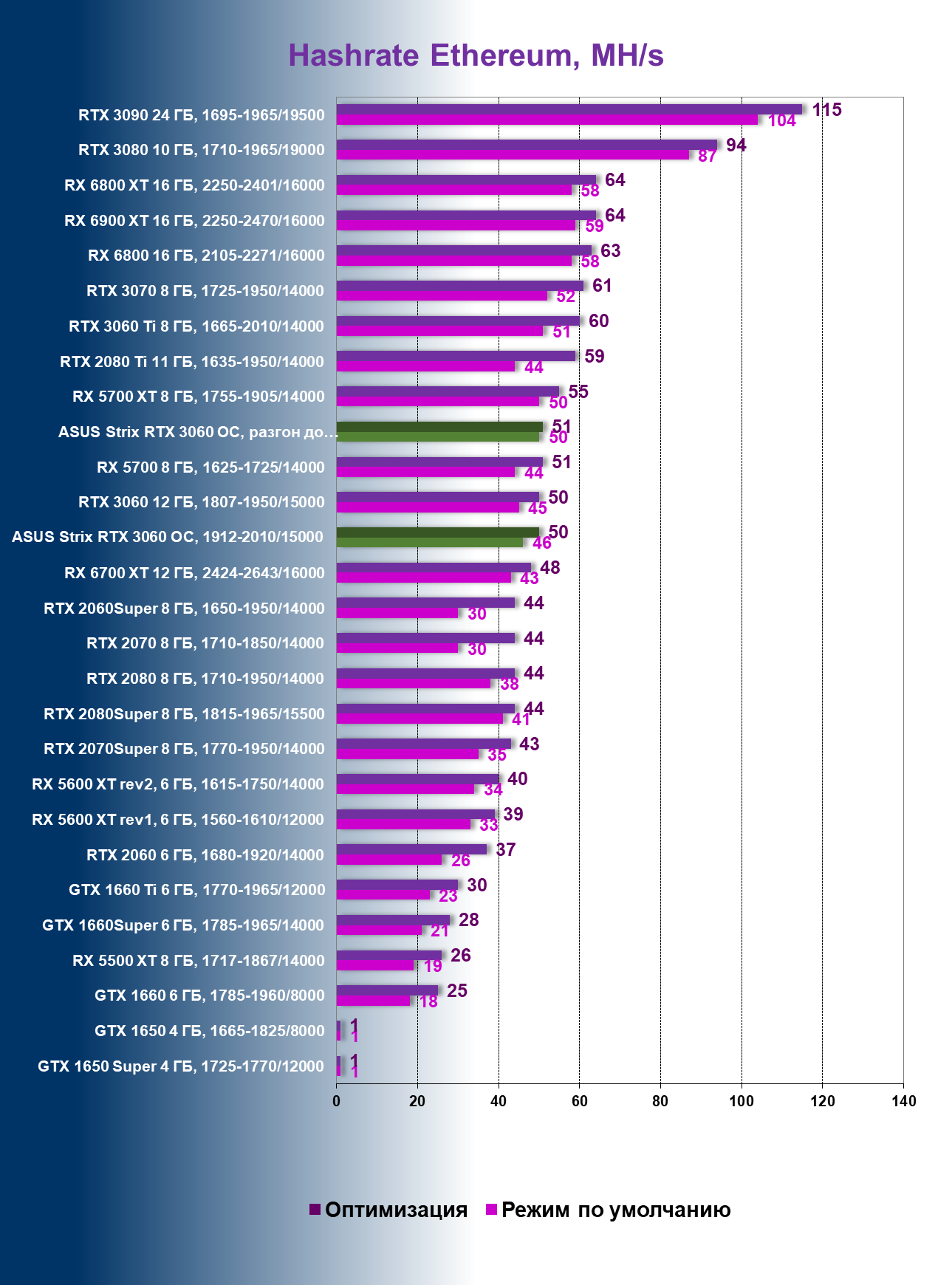 | 11 | Asus Strix RTX 3060 OC, разгон до 2092/17334 | 110 | 11 | 100 000 |