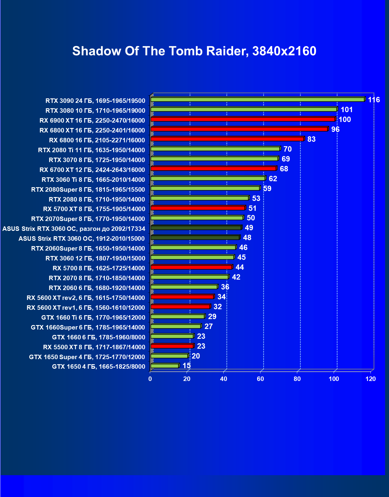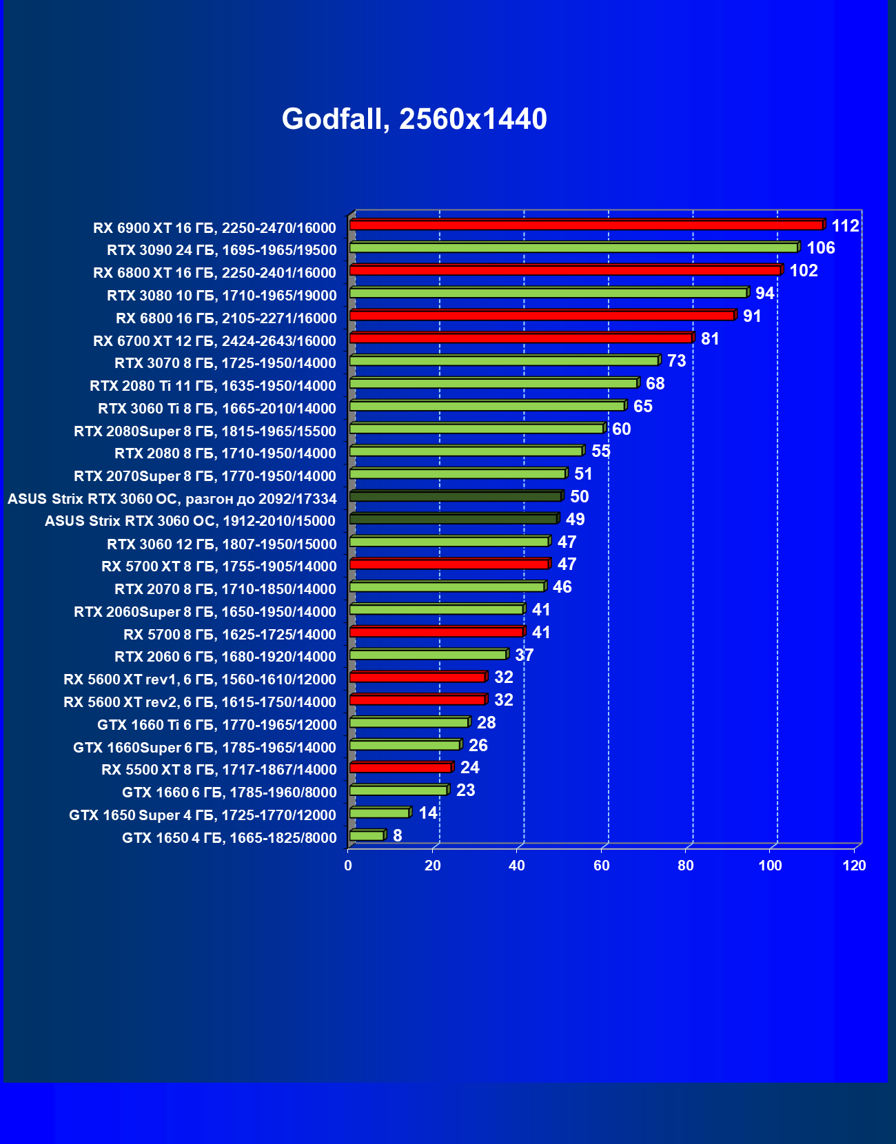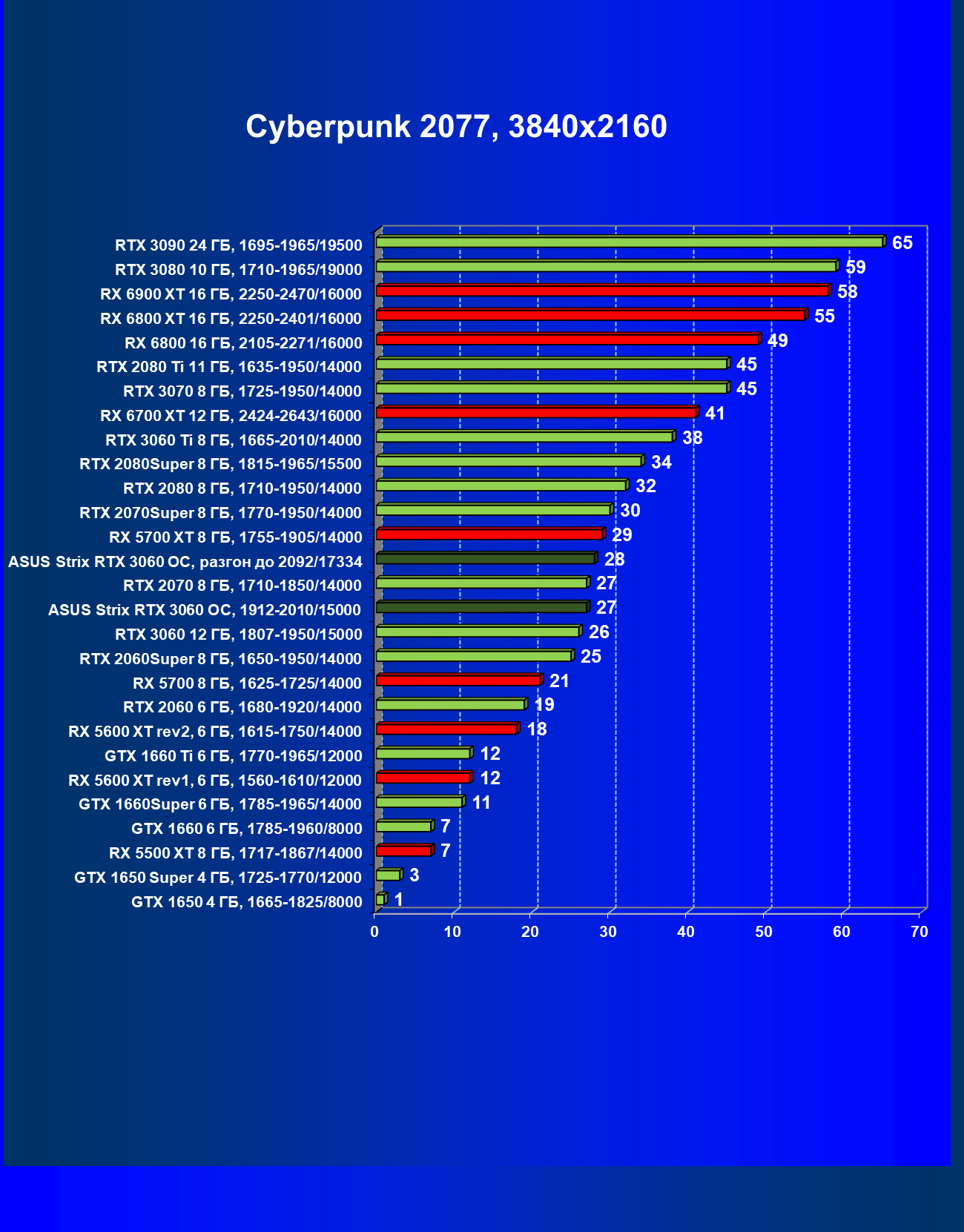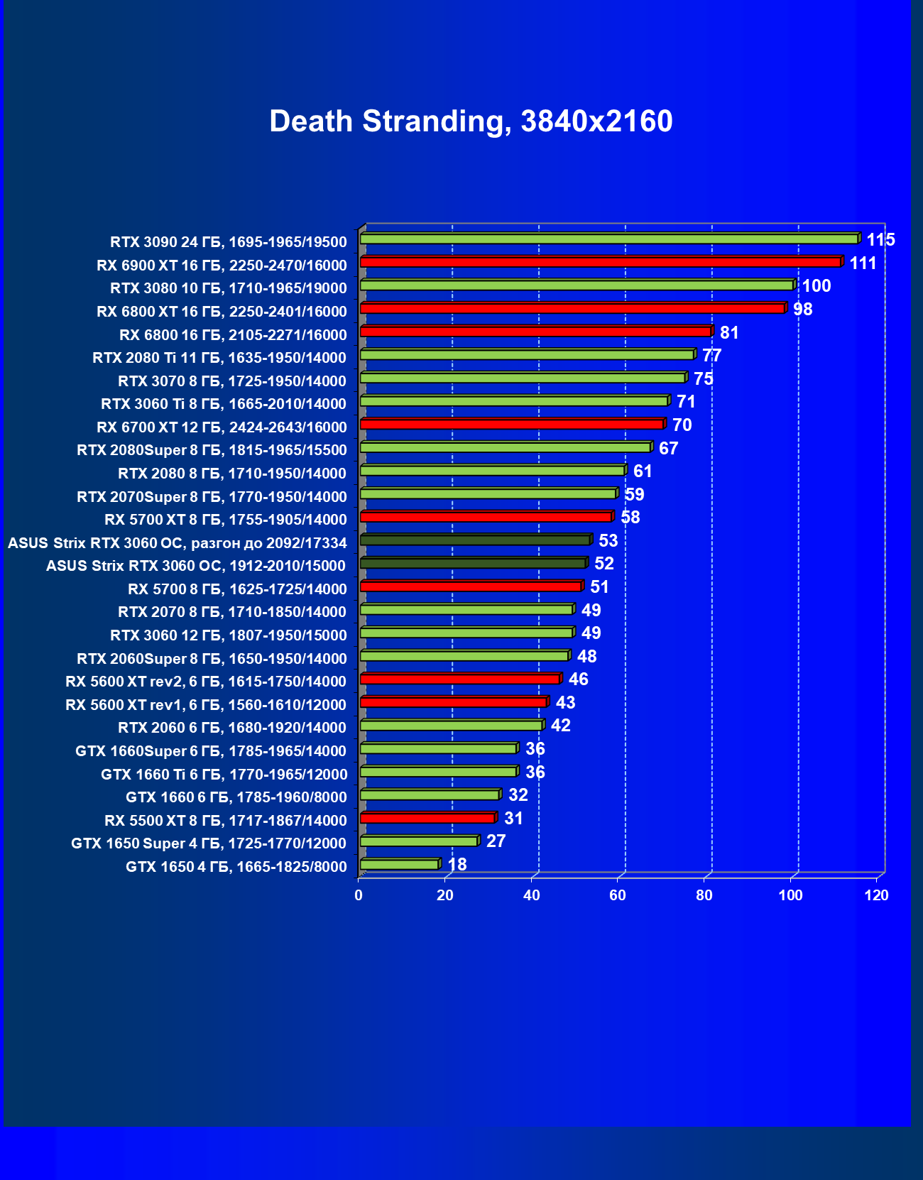 | 11 | Asus Strix RTX 3060 OC, разгон до 2092/17334 | 110 | 11 | 100 000 |