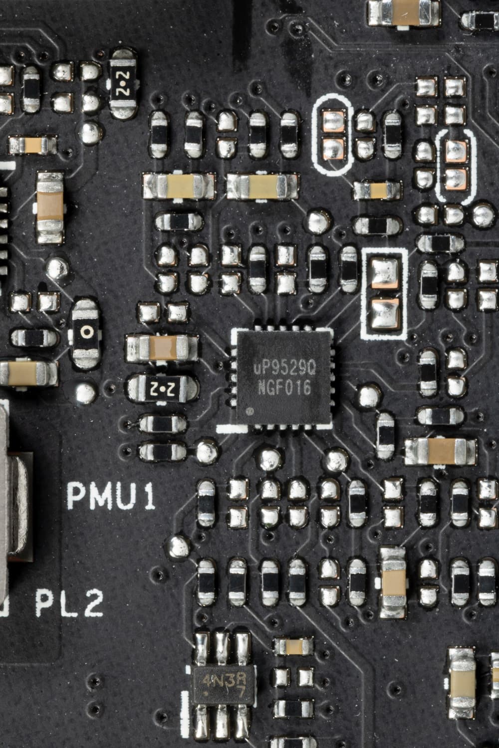 На той же стороне имеется ШИМ-контроллер uPI Semiconductor uP9529Q, который управляет 2-фазной схемой питания микросхем памяти.