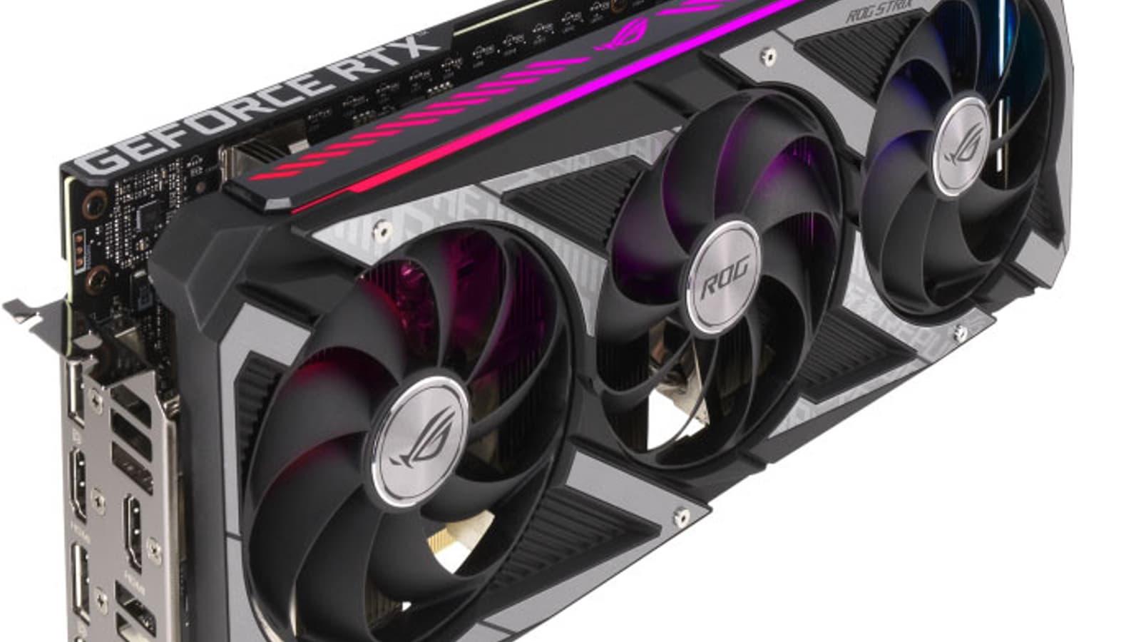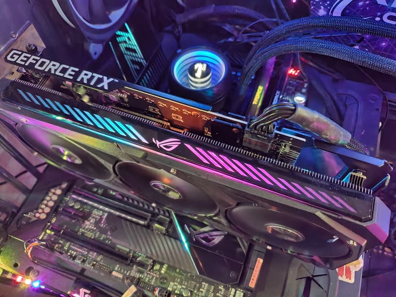 Подсветка у карты реализована на верхнем торце, во вставках около вентиляторов и в логотипе ROG на задней пластине.