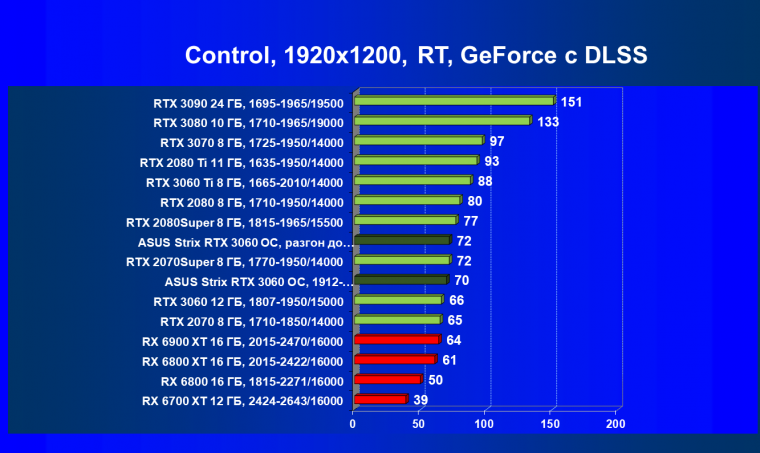 Напомню, что, как и в случаях с более старшими ускорителями новой серии, GeForce RTX 3060 реализует в играх все преимущества технологии трассировки лучей в сочетании с DLSS. И в том же разрешении Full HD производительность GeForce RTX 3060 при включении RT+DLSS является более чем достаточной. Да и без DLSS во многих играх с RT новинка показывает приличную скорость. GeForce RTX 3060 является прямым конкурентом ускорителю Radeon RX 5700 XT и прошлым GeForce RTX 2070 и GeForce RTX 2060 Super.