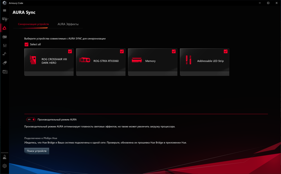 Управление подсветкой традиционно выполнено с помощью фирменной программы Asus — Armoury Crate.