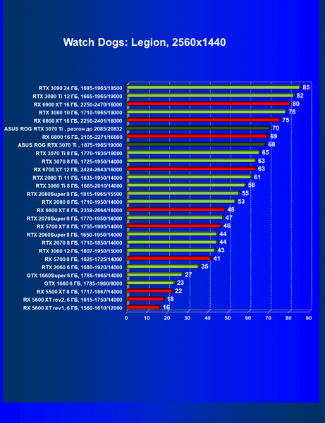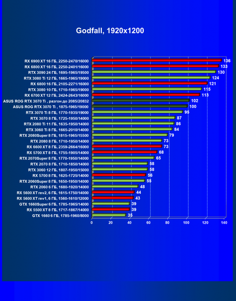 | 15 | RX 6900 XT 16 ГБ, 2015—2470/16000 | 11 | 183 | 160 000 |